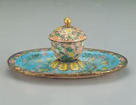 中国人习惯于将涂饰在金属器物表面的玻璃质称为珐琅釉。珐琅釉的主要的成份是矽酸盐类。需与不同材质的胎体结合,因此在制作技术上要兼顾釉与胎两者的理化性质;也就是说,这些釉至少应调配到膨胀系数比胎质的小,同时熔点比胎质的低,才能完整的附着在器表以增添器皿的美观。珐琅器即金属胎珐琅器,是一种集金属制作与珐琅釉料加工处理为一体的复合性工艺制品。它既具备金属贵重、坚固的特点,又具备珐琅釉料晶莹、光滑及适用于装饰的特点。