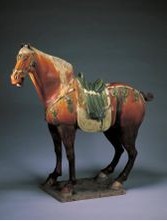 唐三彩的特点可以归纳为两个方面,首先是造型。从造型方面来讲,它的造型与一般的工艺品的造型不同,与其他时代出土的马也不同。