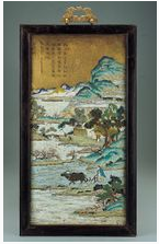 乾隆皇帝性喜风雅,善作诗词,此幅乾隆题诗的掐丝图画,用做壁饰,增添居室文人气息。珐琅器注
