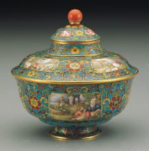 珐琅器即金属胎珐琅器,是一种集金属制作与珐琅釉料加工处理为一体的复合性工艺制品。它既具备金属贵重、坚固的特点,又具备珐琅釉料晶莹、光滑及适用于装饰的特点。 依据金属胎珐琅器在金属加工工艺和珐琅釉料具体处理方法上的不同,一般可将金属胎珐琅器分为画珐琅、掐丝珐琅,透明珐琅,锤胎珐琅,錾胎珐琅及流行日本的七宝烧等几个品种。清乾隆 画珐琅兽面纹甗 清代康熙帝年间,中西方贸易禁止被解除后,欧洲的画珐琅器(洋瓷)传入中国,并以贡品、礼品等形式进大清宫廷。这些舶来的画珐琅工艺品,引起了清代皇帝及王公大臣的关注,于是清政府分别在广州和北京宫廷专门设立了珐琅器制造作坊,借鉴掐丝珐琅器、瓷器和料器(玻璃器)的生产,并吸收欧洲画珐琅工艺制作方法,经若干年努力,终于成功地烧制出了在图案题材、器物造型、珐琅色彩以及使用功能等各个方面,具有自身风格特点的画珐琅器,并且一直影响到现在。 画珐琅器还有非金属胎的,如瓷、紫砂、玻璃等,这类工艺制品称之为“珐琅彩”,属陶瓷艺术品。瓷胎画珐琅的制作工艺极为精湛,其珐琅釉料颜色丰富多彩,色彩控制准确,画面富有立体感,富丽堂皇。以康熙雍正时期最为精湛。鉴赏收藏