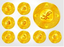 “国宝九龙金币”为法定流通纪念币,每套9枚,每枚面值均为5Dollars(元),直径为14.6mm(圆形),重量为1/20盎司(1.55克)/(Au.999)。镀金币套直径为30mm。 九龙壁镀金摆件:长宽269.5×50.5mm,采用锌合金为体,表面镀Au.999纯金。 九龙壁配以红木底座。手工雕刻,手工彩绘,色彩夺目,兼具观赏及收藏价值。价值亮点
