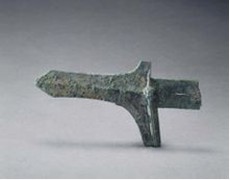 胡:青铜戈或戟锋刃曲而下垂的部分,一面为锋刃,一面有案,以用线索固定于柲上。