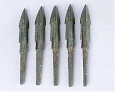 青铜镞是安装在箭杆前端的锋刃部分,用弓弦弹发可射向远处。青铜镞在二里头文化时期即已出现,属最早出现的青铜兵器之一。其形制较多,主要有双翼、三翼与三棱三类,随时代的发展而有所变化。战国时期,远射的三棱矢镞已改成铁铤。