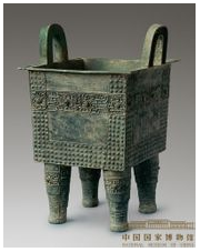 器立耳,口近正方形,折沿,腹部呈方斗形,壁微斜,平底,下承四柱足,中空。腹部四壁两侧缘与下缘饰乳丁纹,上腹部与四足上部饰带状饕餮纹。 1950年,在河南郑州发现面积达2500万平方米的商代遗址,遗址中部有一处筑有内、外城的商代前期城址,面积约1300万平方米。内城东北部有大型宫殿遗址,内、外城之间分布各种手工业作坊遗址,此乳丁纹青铜方鼎即发现于这一地区。 商代早期的铜鼎,有圆鼎和方鼎,器壁较薄,圆鼎为锥足,方鼎为柱足,足中空,与腹腔相通。商代晚期,方鼎的鼎腹发展为长方形,耳有立耳和附耳,柱足。圆鼎的锥足变成圆柱形足,三足与两耳对称,器身多有富丽繁缛的纹饰。西周早期的方鼎基本沿袭商鼎形式,到西周中期以后被淘汰。西周的圆鼎,其柱足向蹄足演变,器体加宽,最大腹径由中部逐渐下移,并多见长篇记事铭文。上一篇:重轮星芒纹铜镜