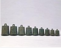 编钟是用作宗庙祭祀与宗族宴飨时的打击乐器。使用时大小相次悬挂起来,用木槌敲击。礼乐制度中编钟的数量与悬挂方式也在贵族阶级中有分等级、定名位的作用。