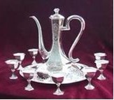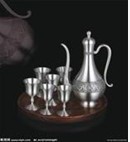 在我国历史上还有一些独特材料或独特造型的酒器,虽然不很普及,但具有很高的欣赏价值,如金、银、象牙、玉石、景泰蓝等材料制成的酒器。 明清时期以至解放后,锡制温酒器广为使用。主要为温酒器。 夜光杯 玉竹筒形杯 唐代诗人王翰有一句名诗曰:"葡萄美酒夜光杯",夜光杯为玉石所制的酒杯,现代已仿制成功。 倒流壶 在陕西省博物馆有一件北宋耀州窑出品的倒流瓷壶。壶高19cm,腹径14.3cm,它的壶盖是虚设的,不能打开。在壶底中央有一小孔,壶底向上,酒从小孔注入。小孔与中心隔水管相通,而中心隔水管上孔高于最高酒面,当正置酒壶时,下孔不漏酒。壶嘴下也是隔水管,入酒时酒可不溢出。设计颇为巧妙。 鸳鸯转香壶 宋朝皇宫中所使用的壶。它能在一壶中倒出两种酒来。 九龙公道杯 产于宋代,上面是一只杯,杯中有一条雕刻而成的昂首向上的龙,酒具上绘有八条龙,故称九龙杯。下面是一块圆盘和空心的底座,斟酒时,如适度,滴酒不漏,如超过一定的限量,酒就会通过"龙身"的虹吸作用,将酒全部吸入底座,故称公道杯。 渎山大玉海 专门用于贮存酒的玉瓮,用整块杂色墨玉琢成,周长5米,四周雕 有出没于波涛之中的海龙,海兽,形象生动,气势磅礴,重达3500公斤,可贮酒30石。据传这口大玉瓮是元始祖忽必烈在至元二年(公元1256年)从外地运来,置在琼华岛上,用来盛酒,宴赏功臣,现保存在北京北海公园前团城。当代酒器