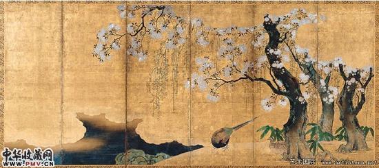 在展览“情境之内外”中,触及相似主题或概念的当代影像作品与古代藏品第一次并置在一起,形成某种程度上的对话。在以“自然”为主题的展室中,日本当代艺术家小濑奈美(Mami Kosemura)在一年间以固定数码摄像机持续拍摄并合成的动态“四季”影像与日本16世纪中晚期的狩野派(Kano School)绘四季屏风相对而立;而在本阿弥光悦(Hon’ami Koetsu)1626年以绘金竹叶为背景的书法卷轴旁边,日本当代艺术小组teamLab将“生”这一日语汉字幻化成历经四季的树木,展现了书法这一艺术形式的过程性和时间感。从雪珠飘洒到蝴蝶翩跹,不同时代和媒介的艺术却共同揭示了“时间变迁”这一亚洲文化中的永恒主题。