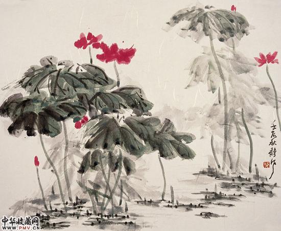 近年来,静风潜心变法,以“心法无形,通贯十方”的志趣,创作出了一批飘然宕逸、清雅风致的画作。小荷顾盼飞扬,恬淡清幽;盛荷饱满艳丽,洒脱丰盈;残荷笔简意淡,虚静空灵。无论是风荷、晴荷、雨荷、秋荷各具千姿百态,不管是白荷、粉荷、红荷、墨荷无不巧夺天工。真可谓:浓彩透华,淡墨藏韵。
