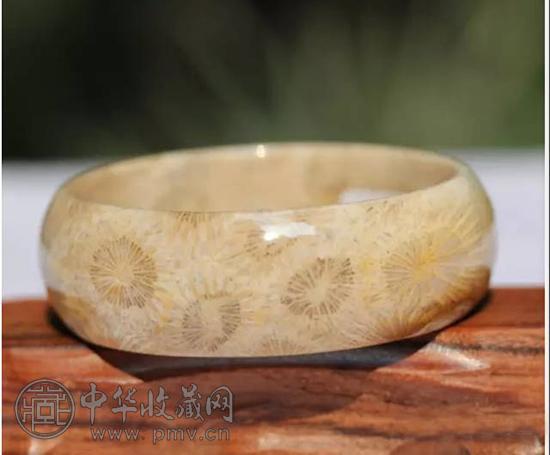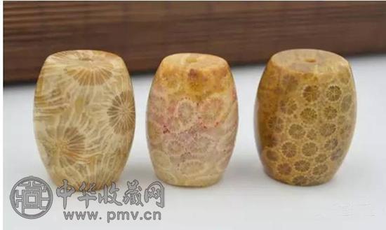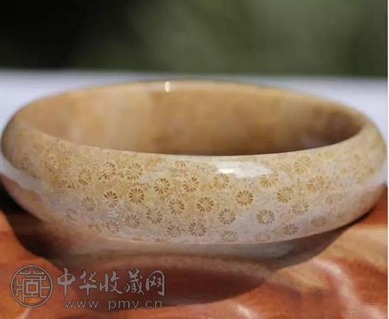 古生物化石是由动物遗骸,经硅化而形成,古生物珊瑚玉有着独特的花纹。它的花纹会因为珊瑚的大小、种类的不同而产生不同的天然花纹图案,或成放射状、或成卷纹状。而玉化矿物由于成分不同,其颜色也多姿多彩。其中花形花瓣清晰,排列紧密,惟妙惟肖仿佛一片菊花海洋的菊花化石更是不可多得的收藏极品,所以珊瑚玉又被称为菊花玉、发财玉。