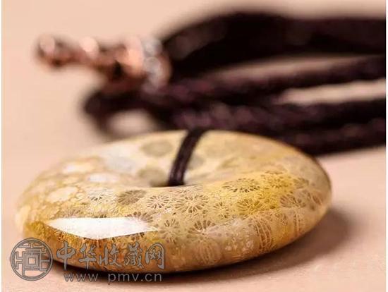 珊瑚玉化石又名菊花玉,是经历数亿年的地壳运动、地热煎熬、高温高压才能形成的化石玉,被誉为“有机宝石”。