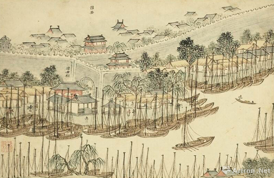 图9 钱榖、张复,《水程图》册之《淮安漂母祠》