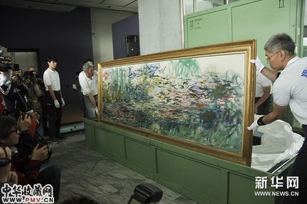 3月1日,在“莫奈花园”展览开箱记者会上,工作人员展示莫奈的作品《睡莲》。新华网图片 新华网台北3月1日 台湾台北市立美术馆将于3月5日举办主题为“莫奈花园”的法国印象派画家莫奈作品展,主要展出莫奈的经典作品共32件。