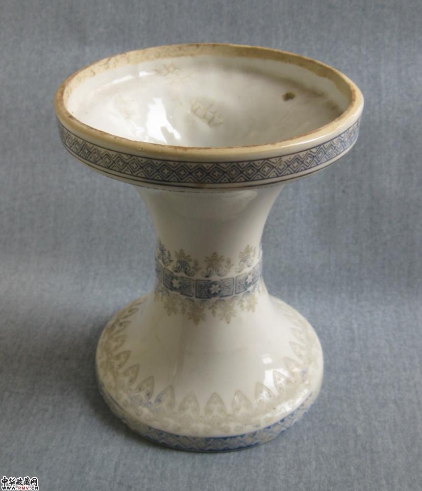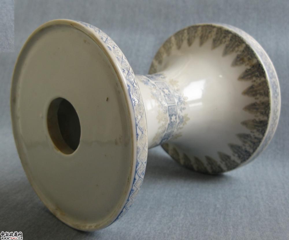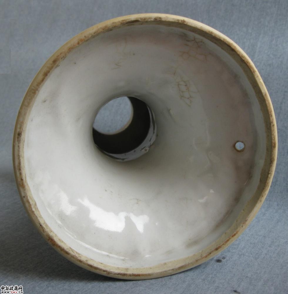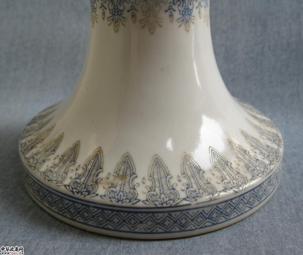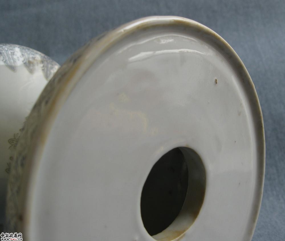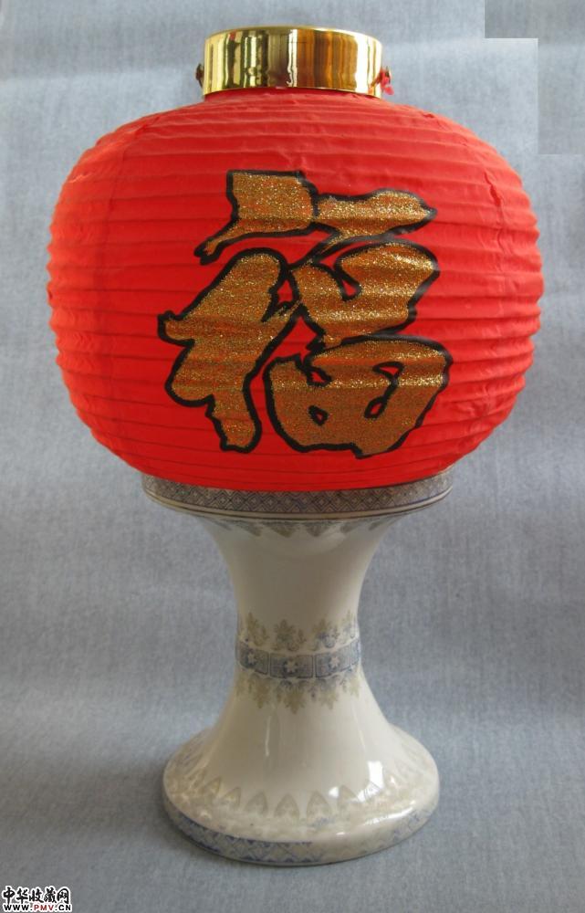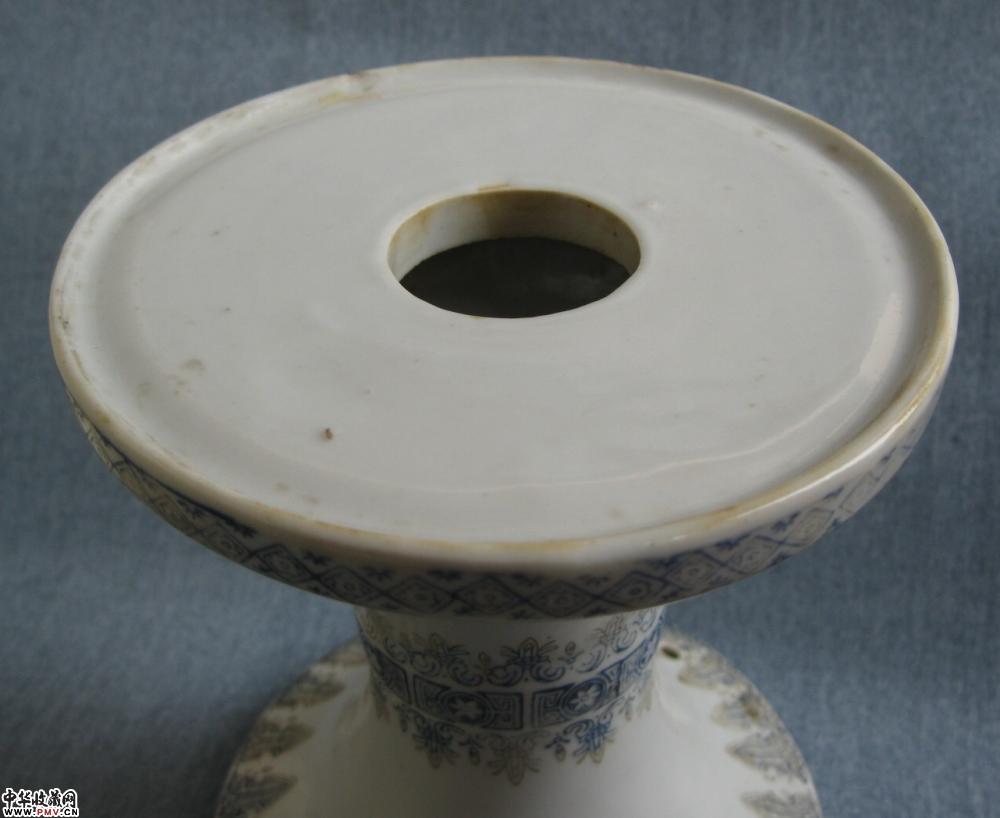 晚清民国釉上蓝彩灯台一只,釉色莹润,器形规整,蓝彩发色纯正,画工细腻,釉面有自然开片纹,这种器形十分少见,值得收藏,底足处内侧有一极小飞皮,可以说全品相了,灯台净高16.2公分(不含灯笼),口径13.2公分.如交易成功,附送自配的福字红灯笼一只.将成为很漂亮的室内陈设品.