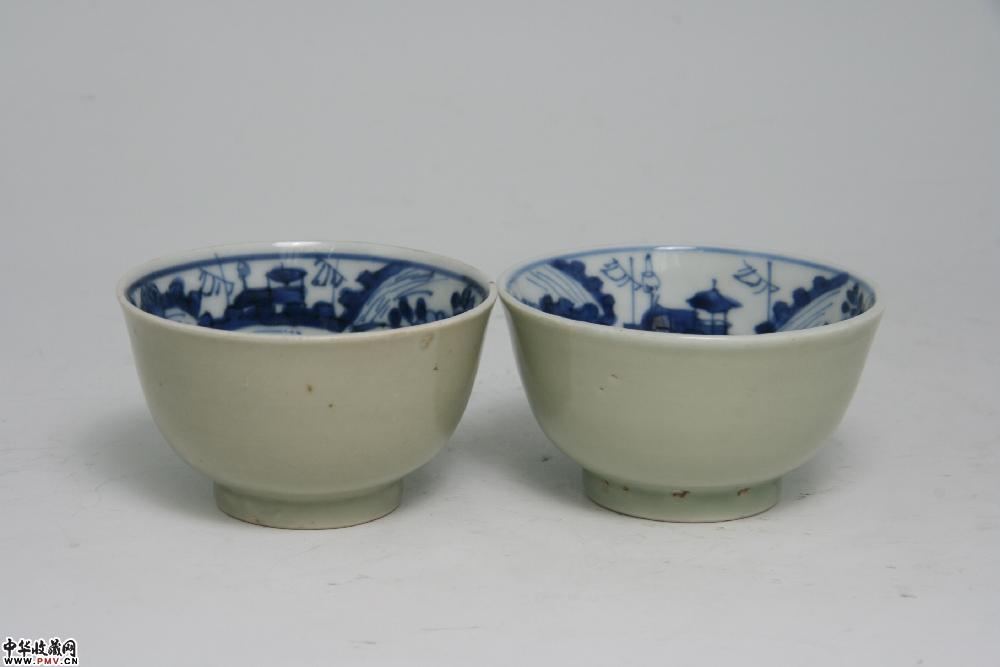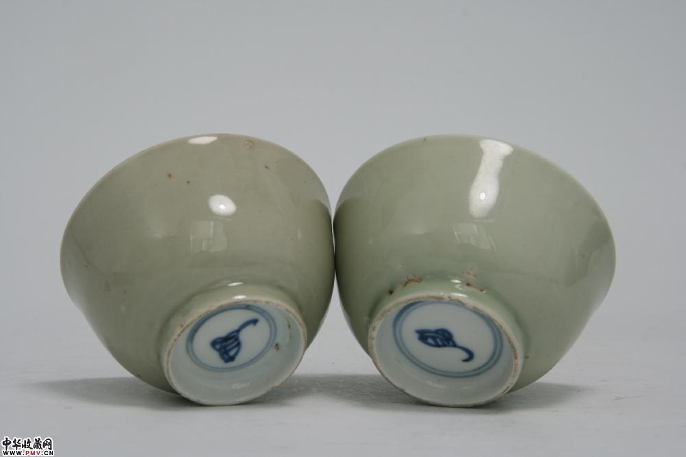 清康熙景德镇窑外冬青釉内青花杯碟(2套)