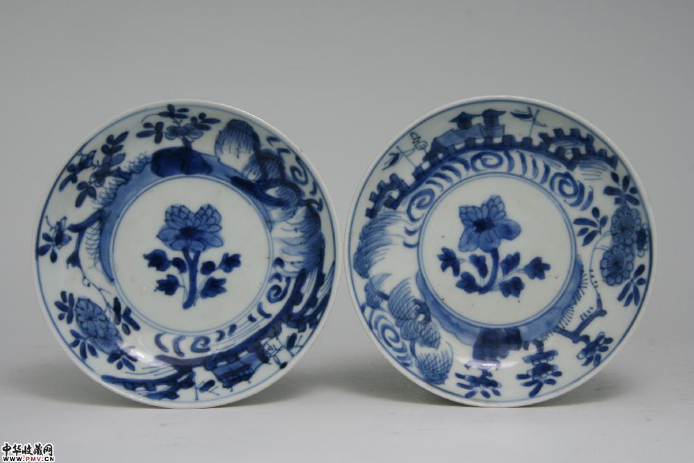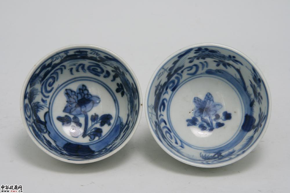 杯口径7cm,完好;碟口径12.2cm,口沿小磕皮。
