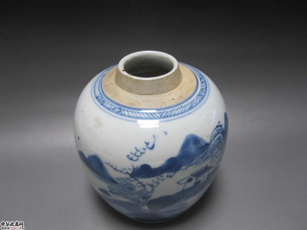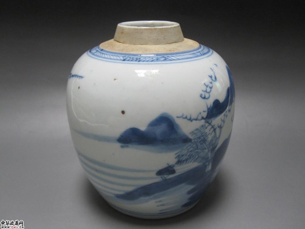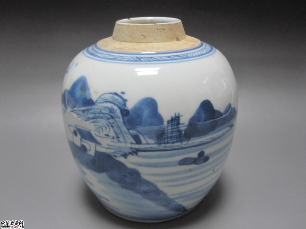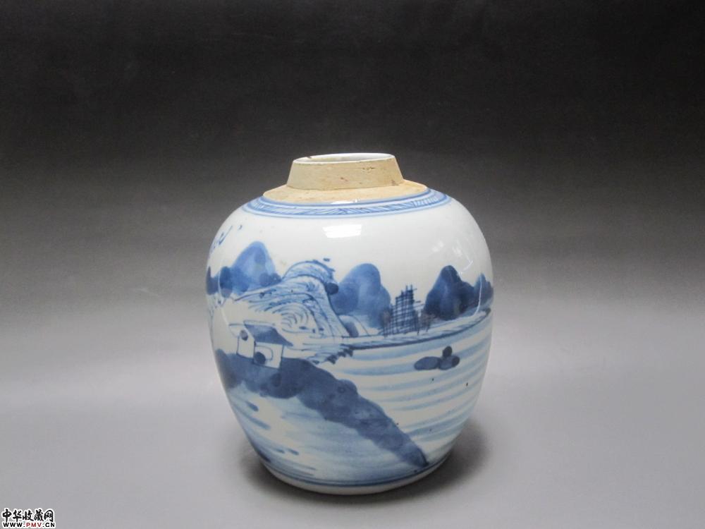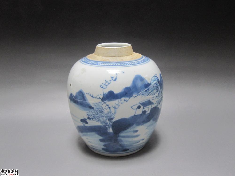 清代青花山水人物纹罐【已售】