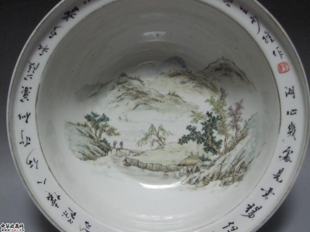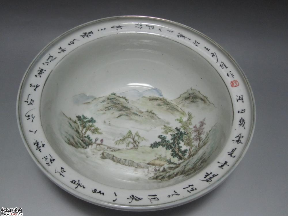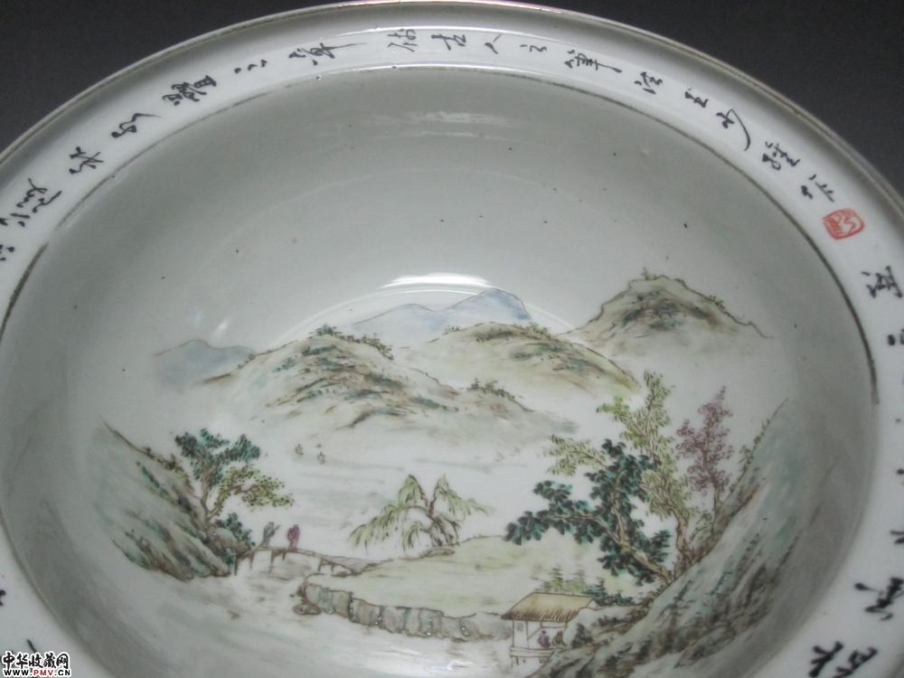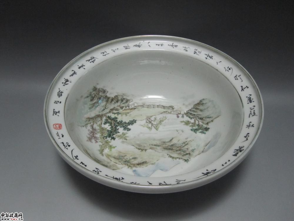 a浅绛彩山水人物盆