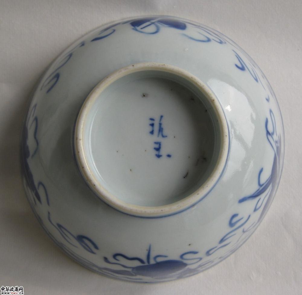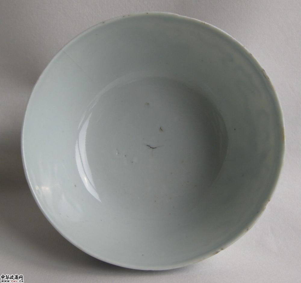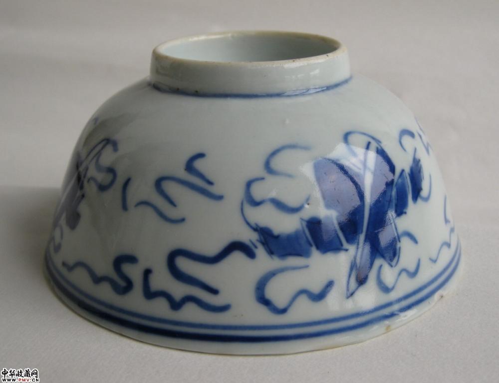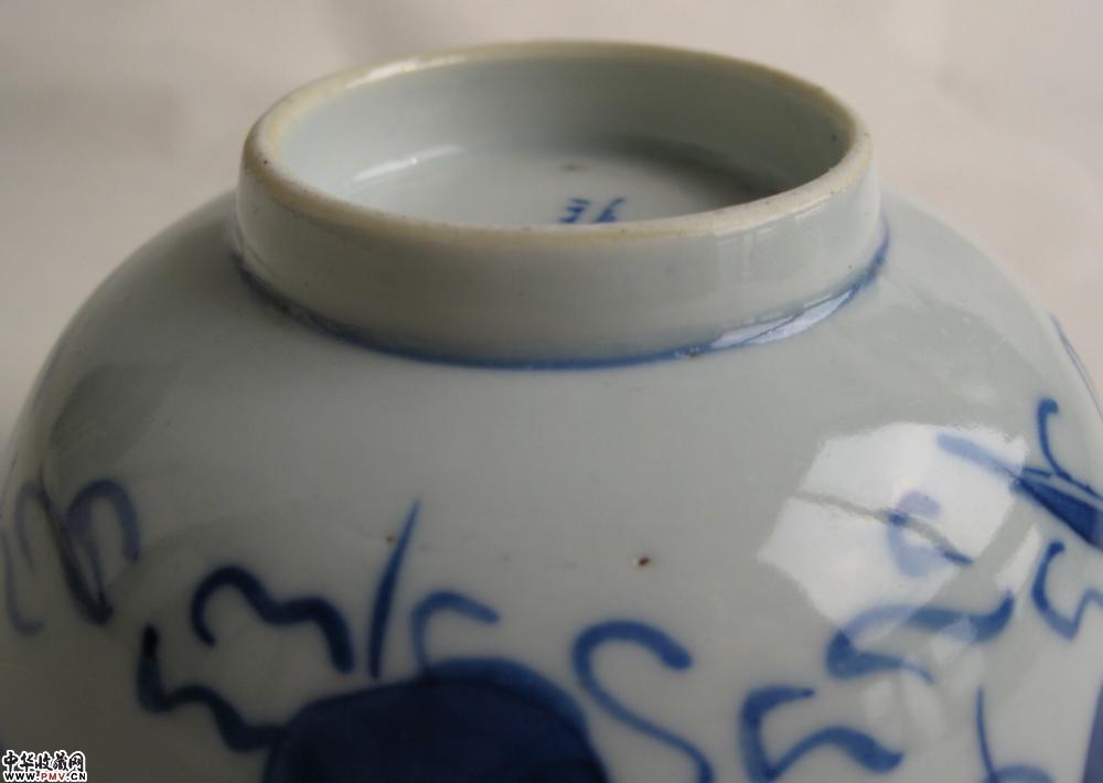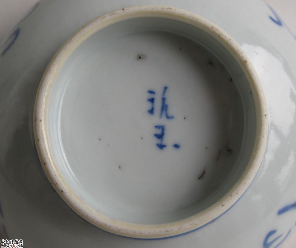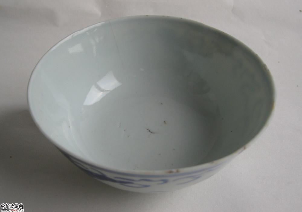 光绪八宝纹青花碗一只,釉色莹润,胎釉精良,属细路品,青花发色纯正艳丽,底款:玩玉,口沿有些小爆及一细纹,口径12.1公分,高5.5公分.