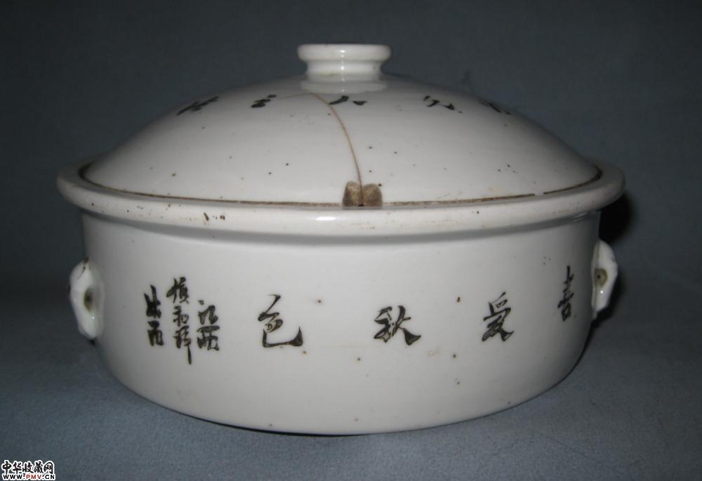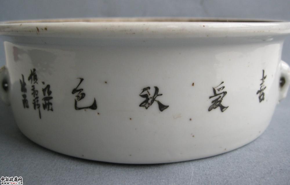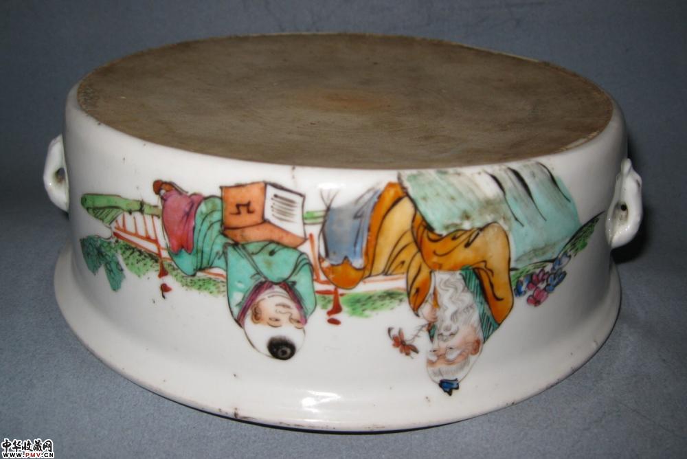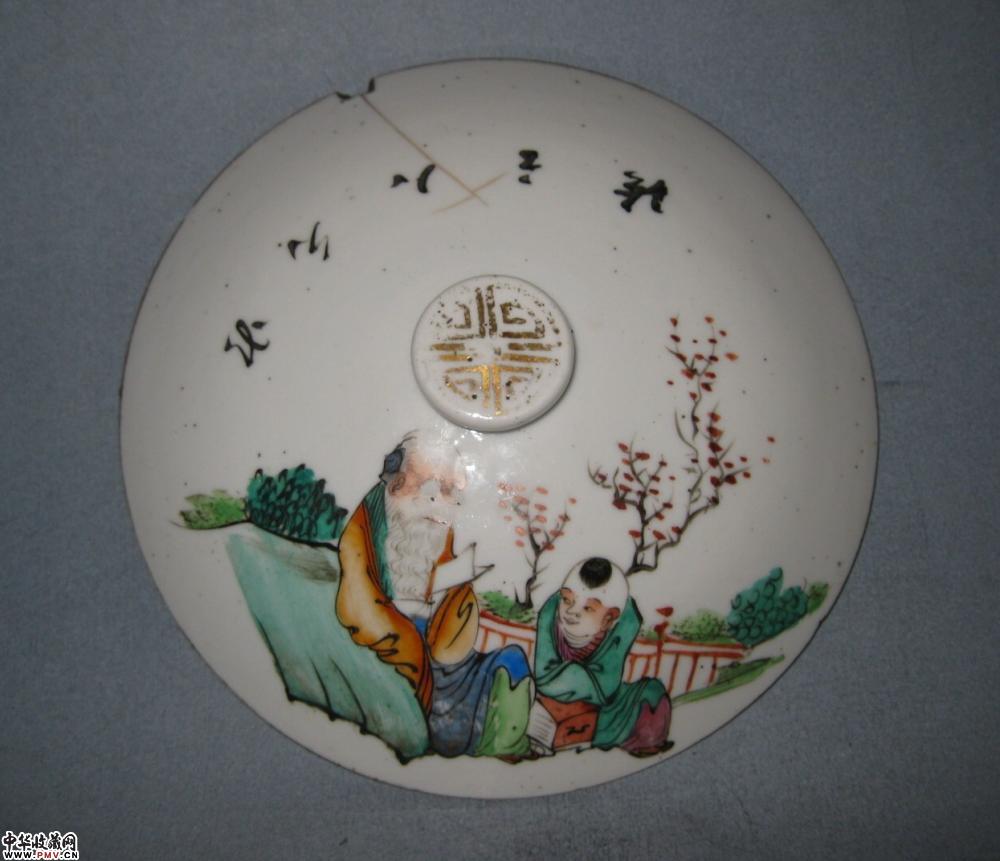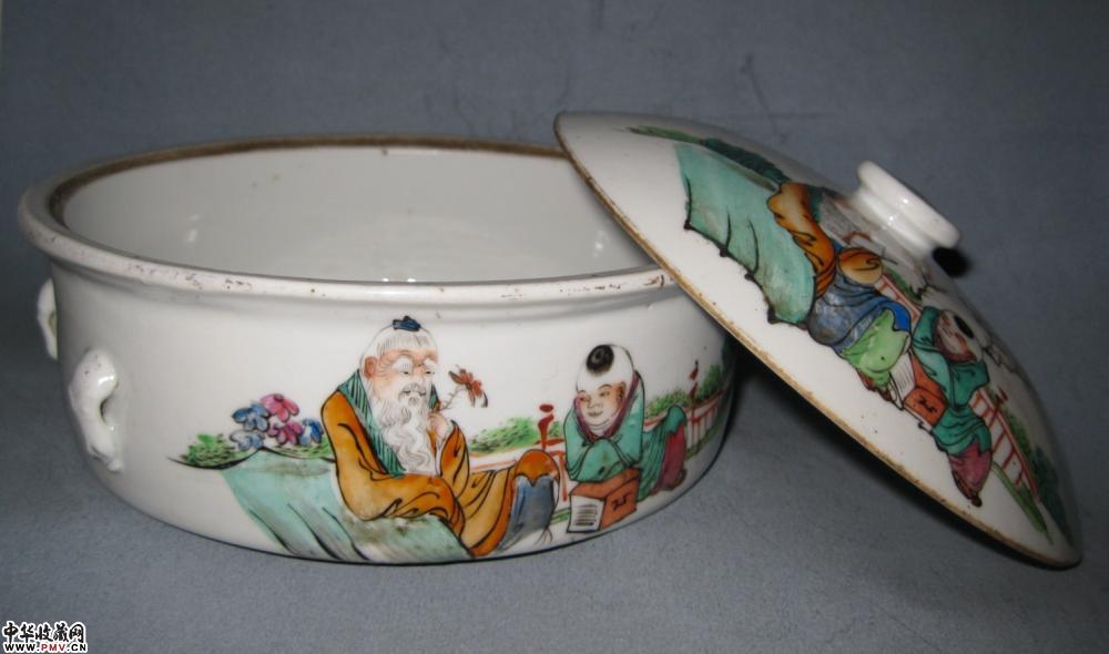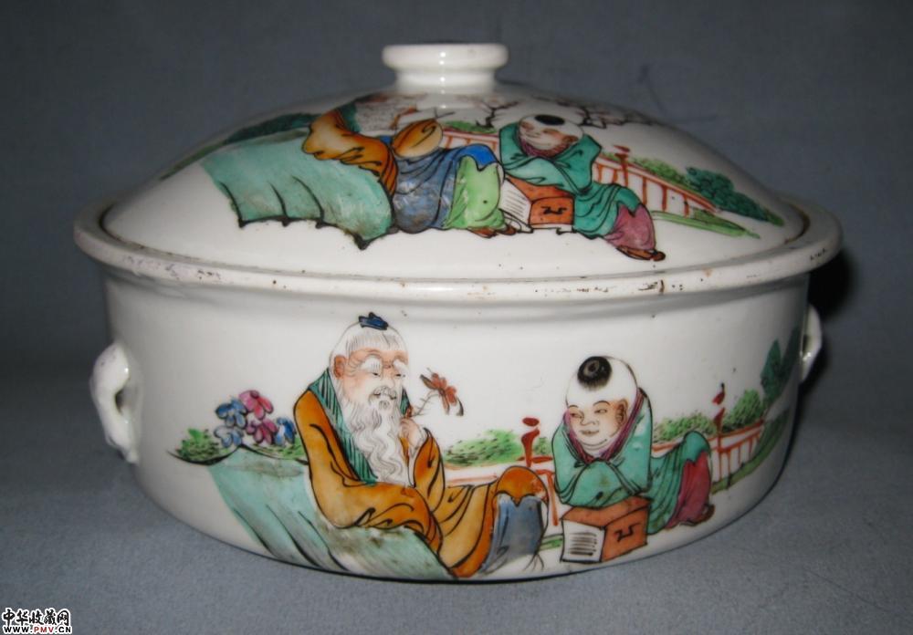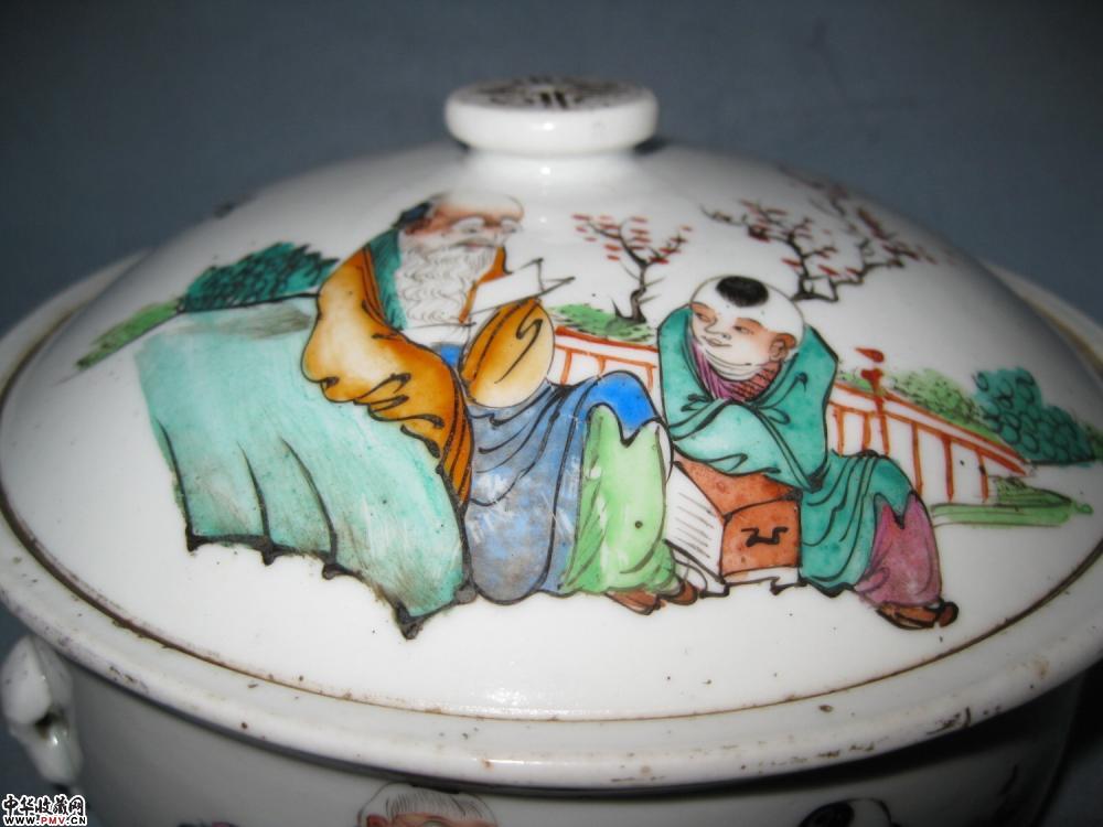 晚清镇和祥款粉彩一品锅一只,釉色莹润,色彩艳丽,画工流畅洒脱,胎釉精良,字画俱佳,盖沿有一老磕冲如图,其它没任何毛病,口径18公分,高约10公分.
