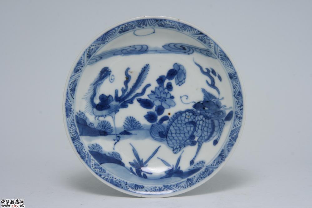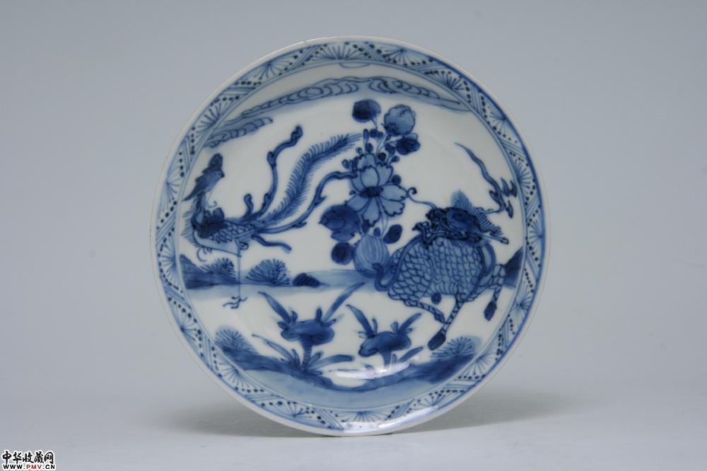 清康熙景德镇窑青花麒麟凤纹碟(一对)