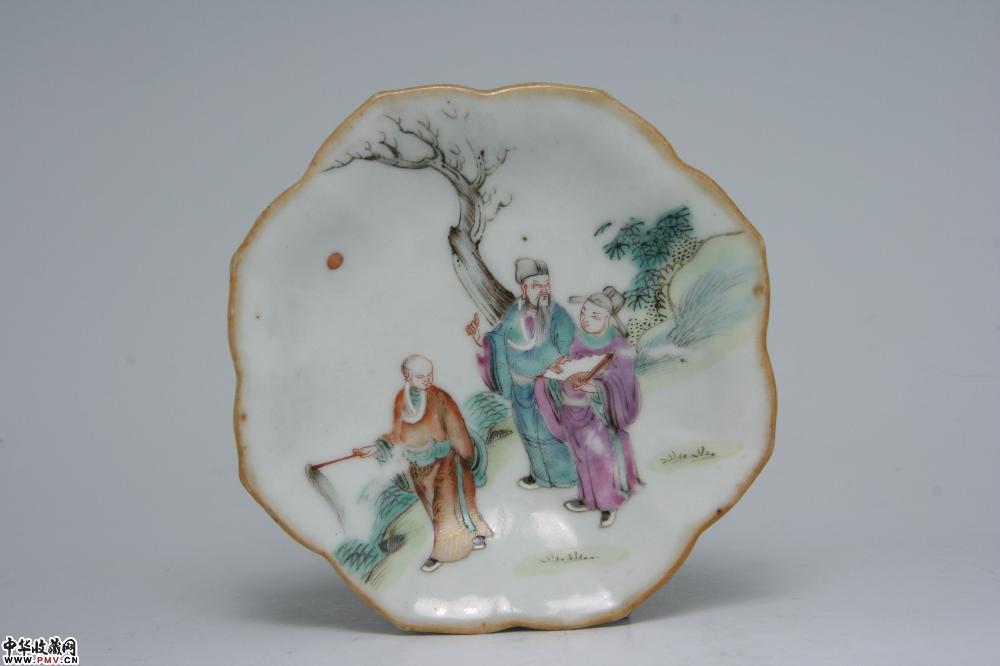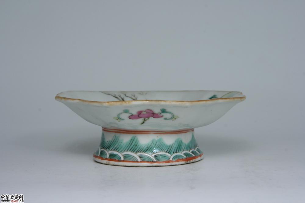 清同治景德镇窑粉彩指日高升图八角高足碟