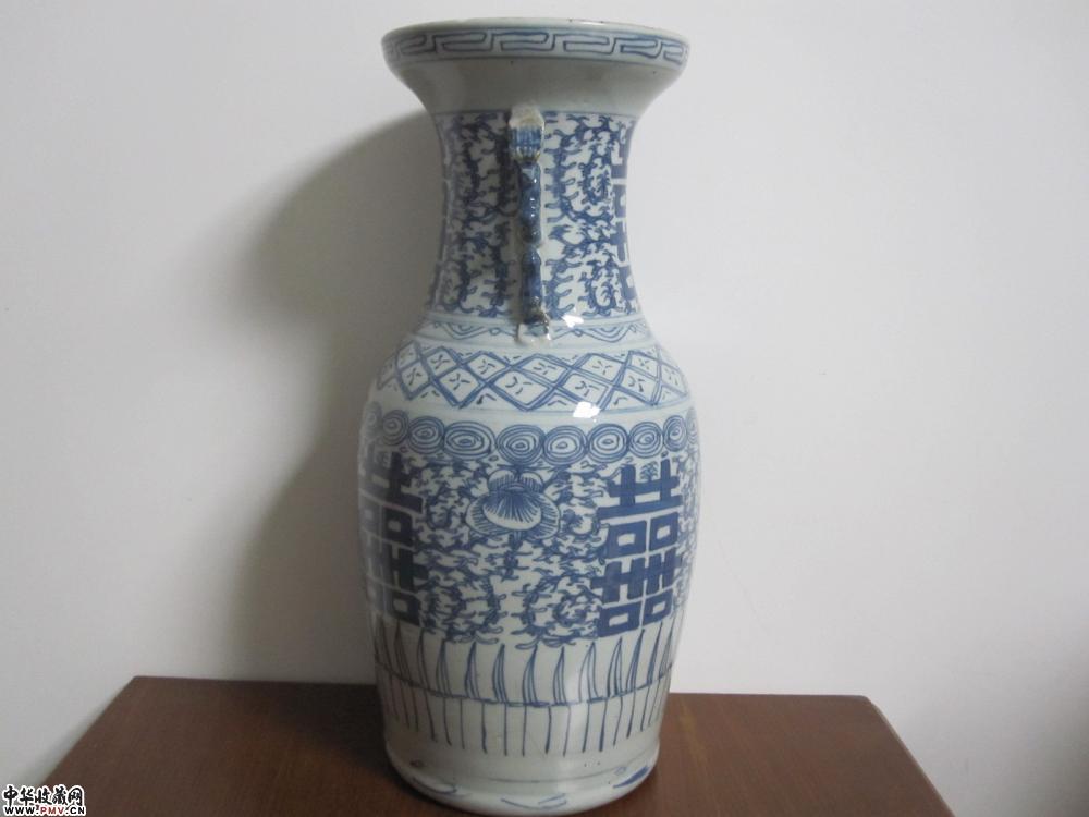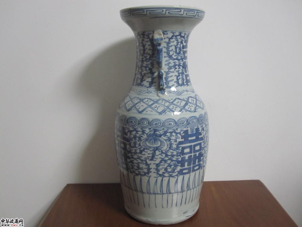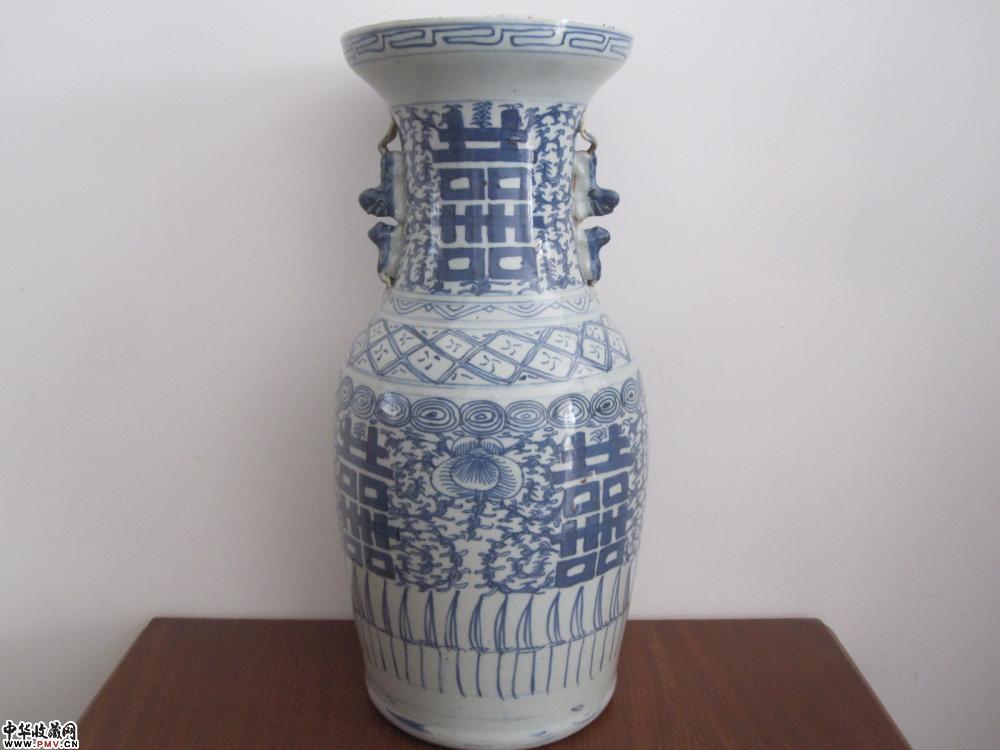 清中期青花缠枝纹双喜盘口大瓶《已售》
