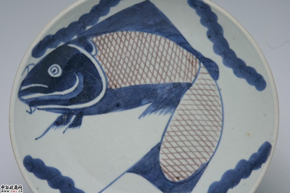 清嘉庆景德镇窑青花釉里红鱼纹盘