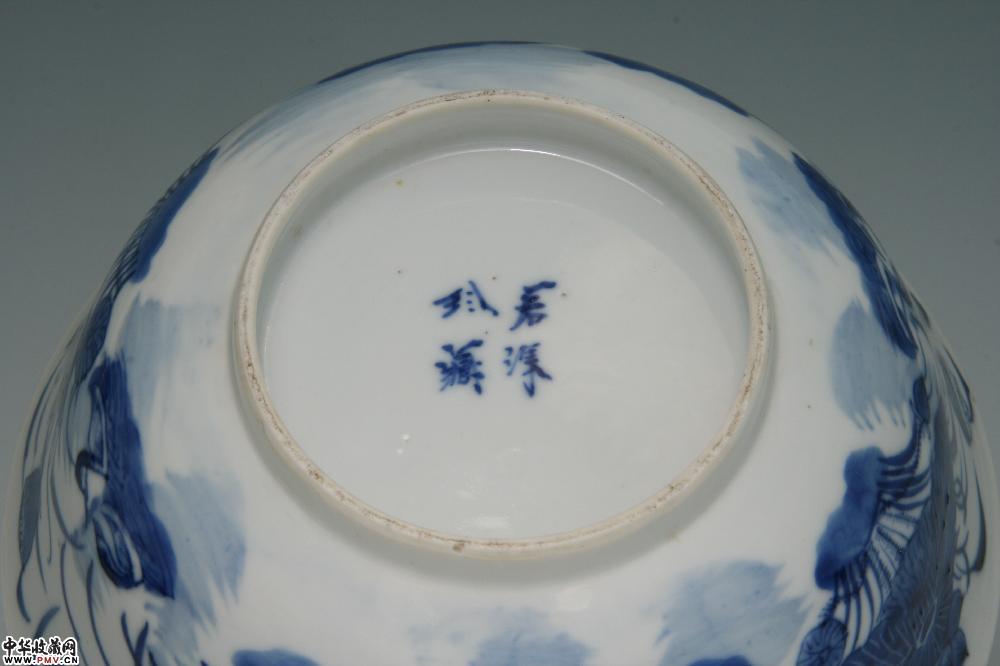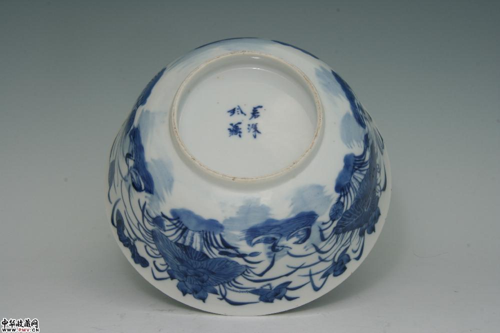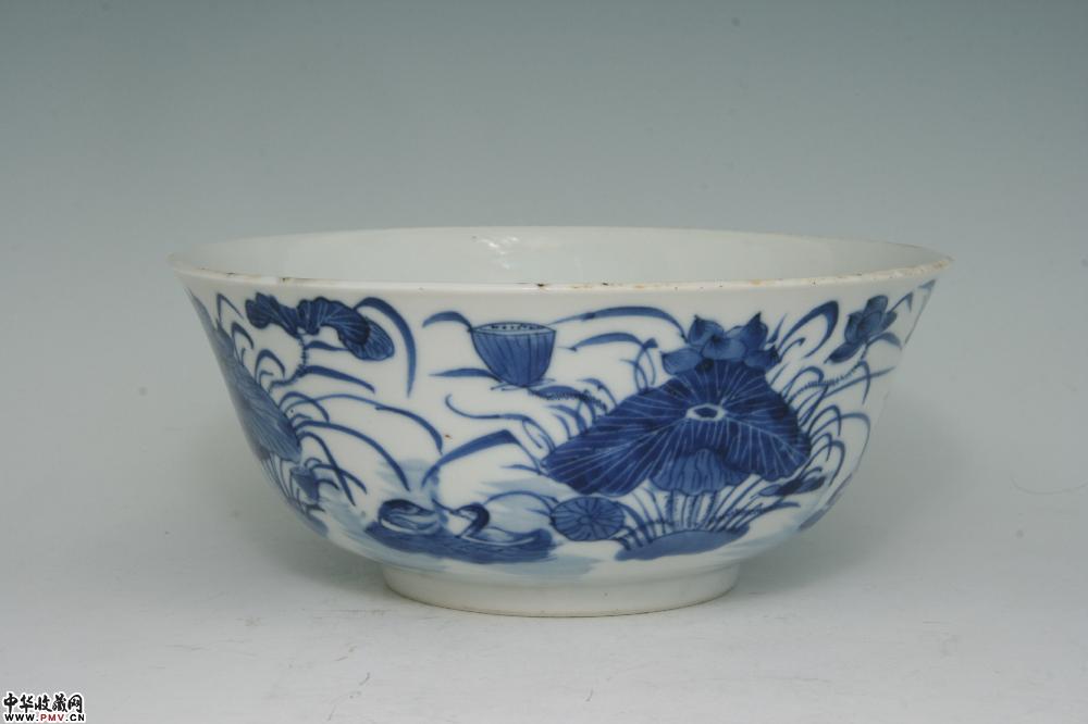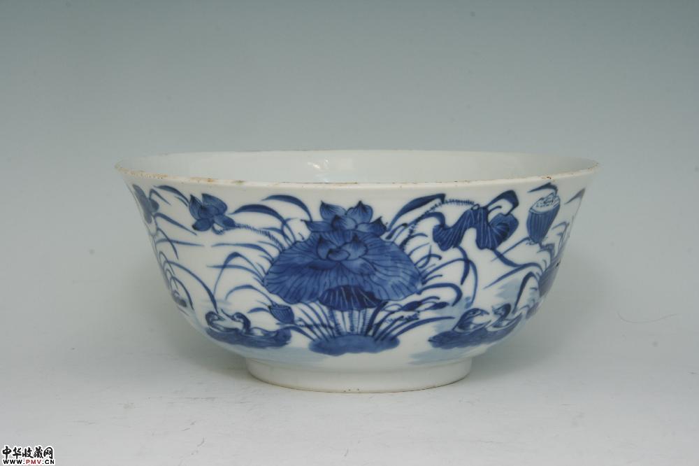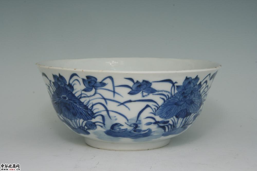 清光绪景德镇窑青花荷塘鸳鸯纹大碗