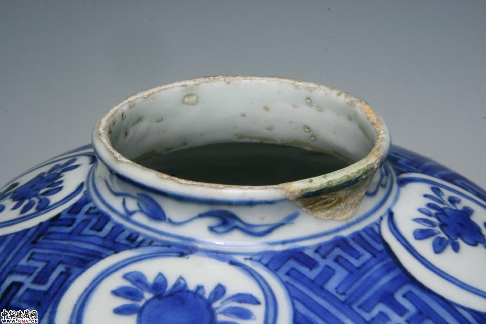 高20.5厘米,口径8.5厘米,底径12.8厘米,口沿有修及剥釉,炸腹。