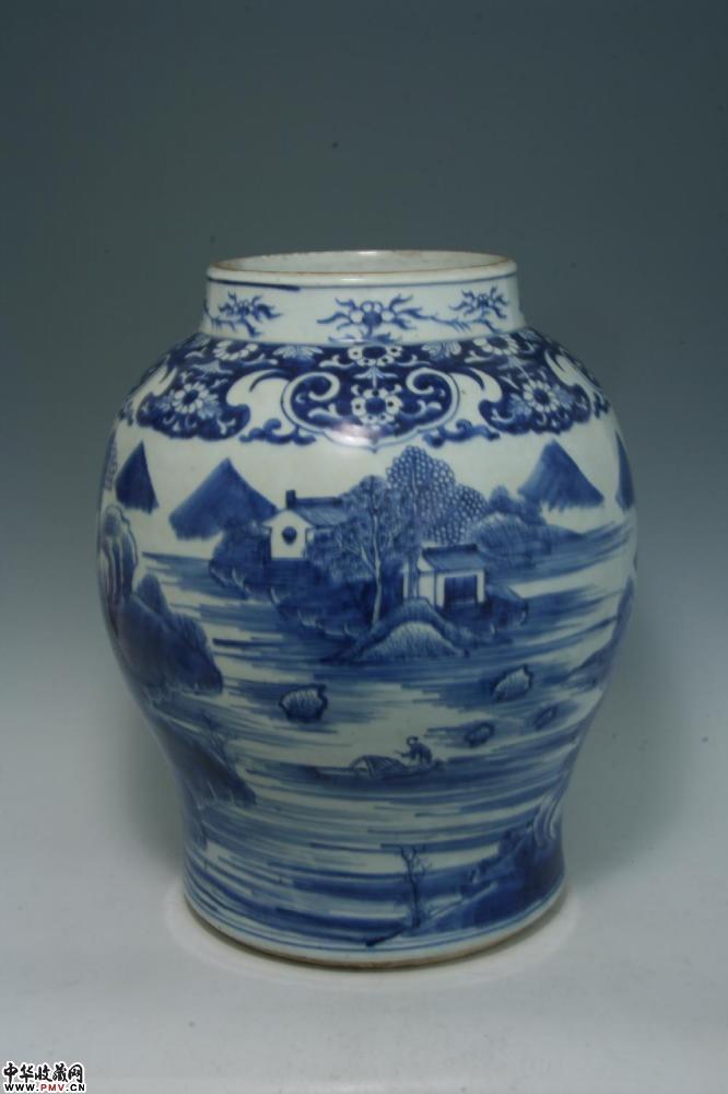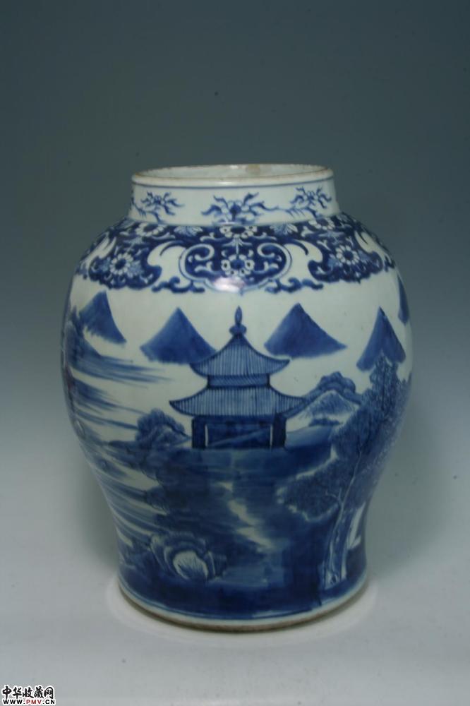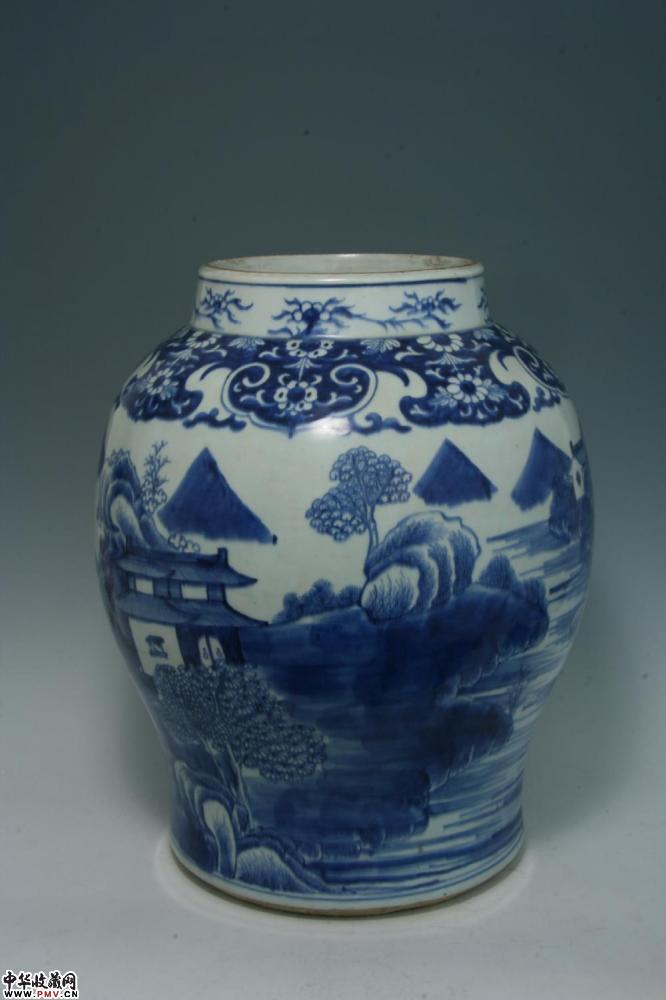 清乾隆景德镇窑青花山水楼阁纹大罐