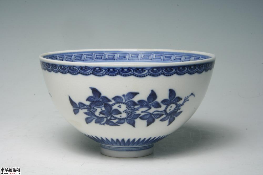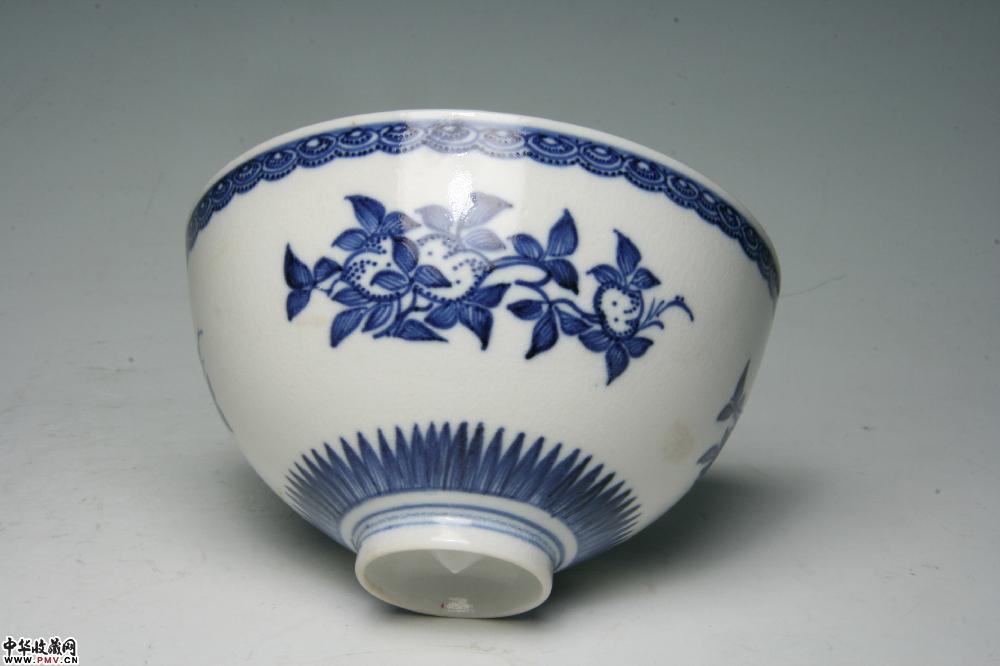 清中期景德镇窑青花三多纹碗