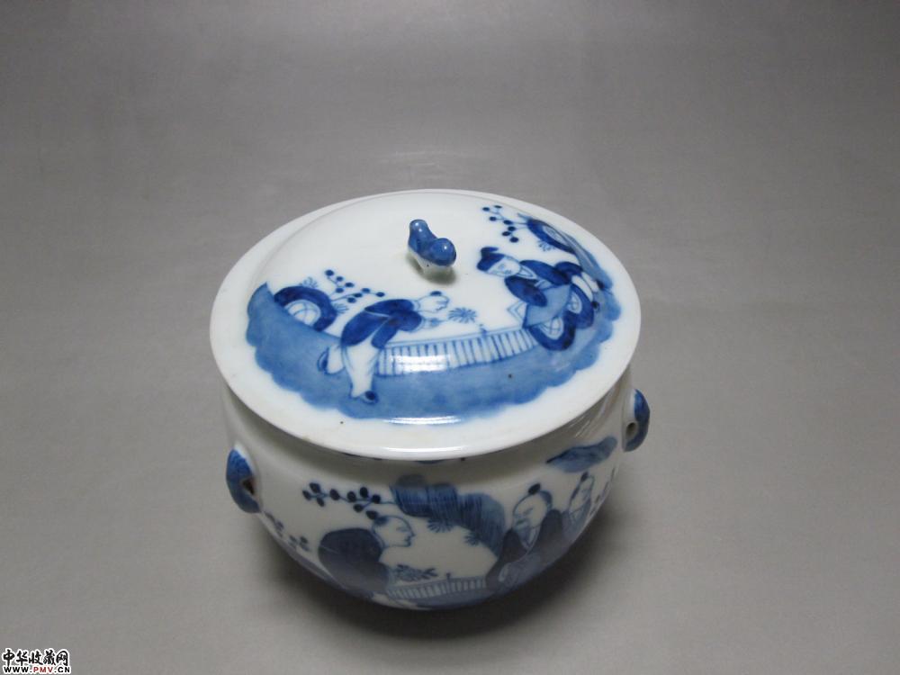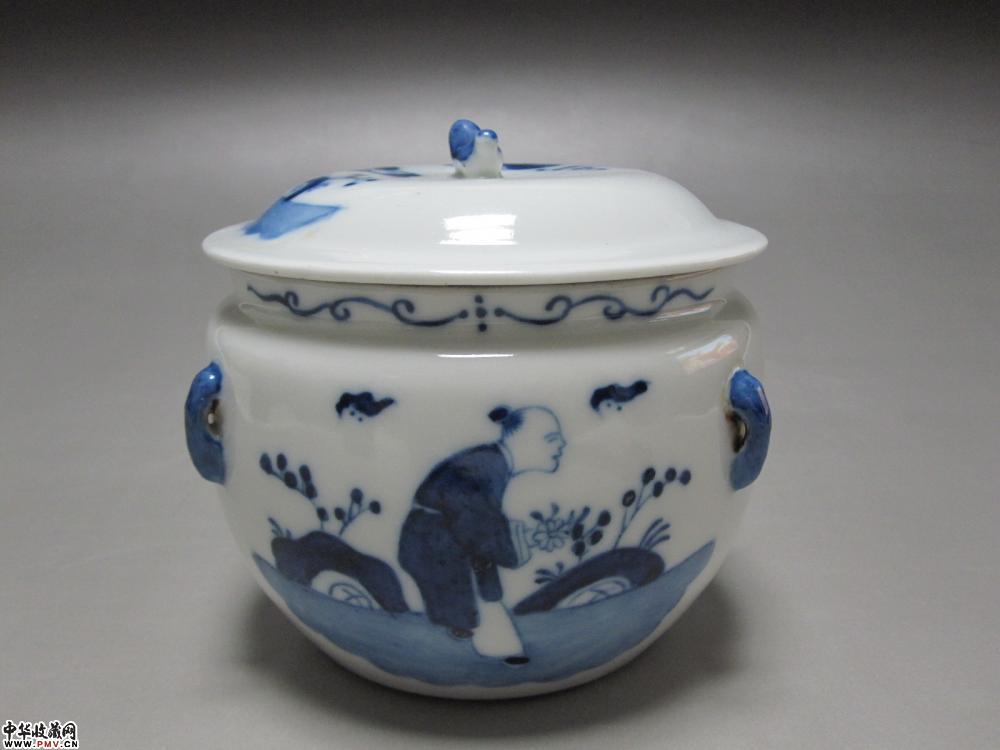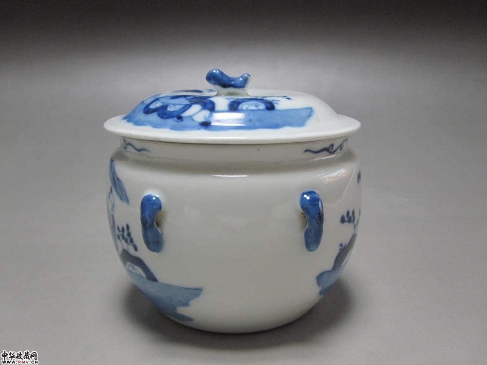 光绪青花人物纹盖罐
