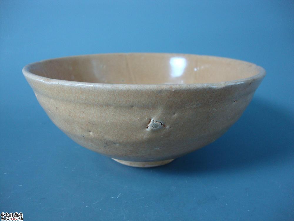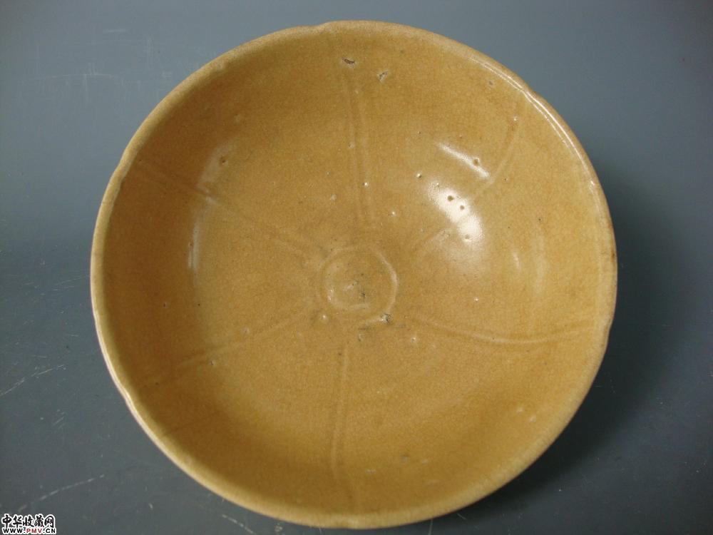 口径16.5cm,高7.3cm。敞口,深腹,圈足,施青釉,釉色泛黄,碗心有六出筋,开片纹,胎土呈灰黄色,为南方地区青瓷。