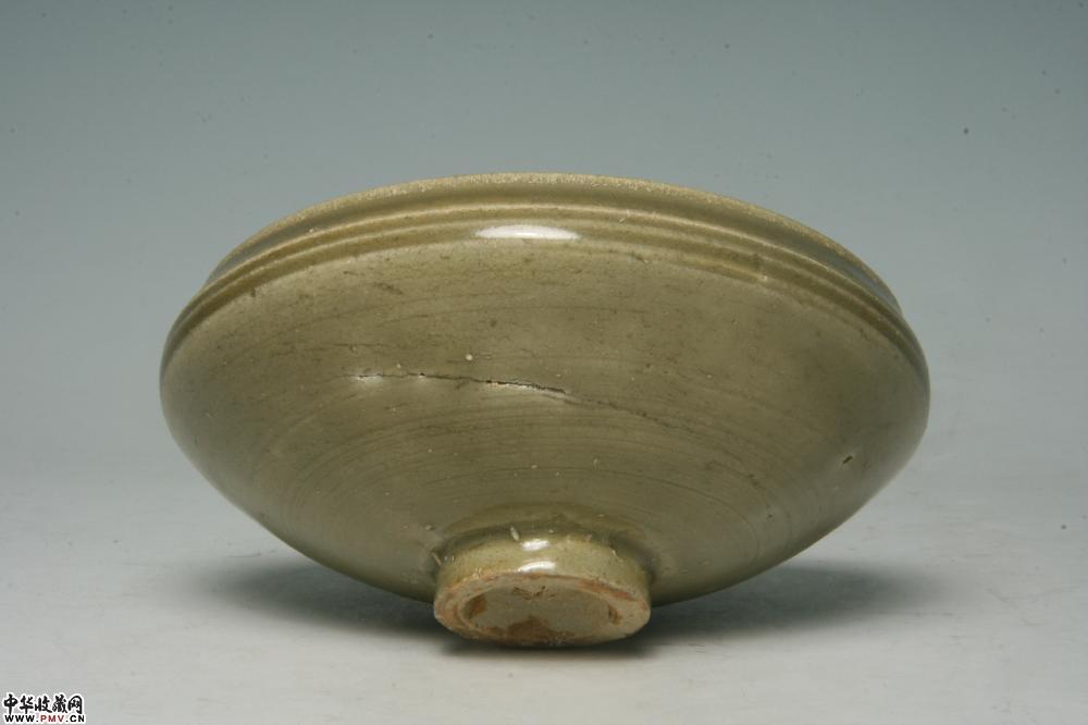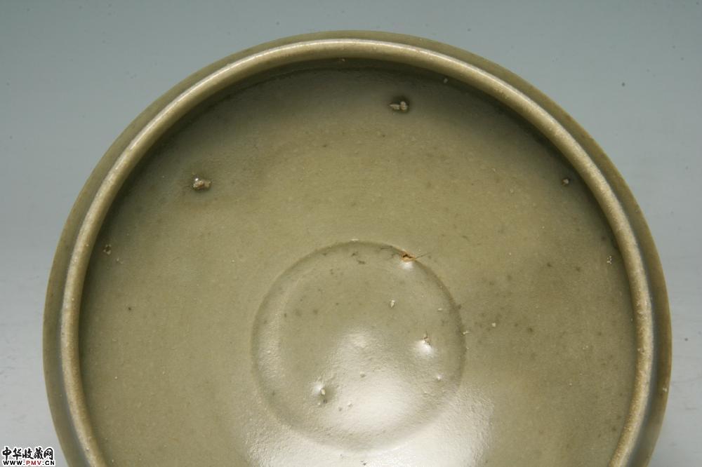 高4.8厘米,口径11厘米,底径3.3厘米,釉水肥润,做工规整,线条流畅,口沿内敛,肩部饰有数条弦纹,令整器更飘逸高雅。胎色呈青灰色。高温紧密,是龙泉难得的佳作,内有小窑粘,外有小窑伤。