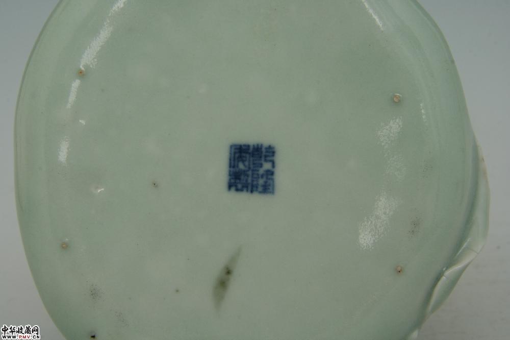 高3厘米,口径13.5厘米,底径11.5厘米,小剥釉,“乾隆年制”青花款。
