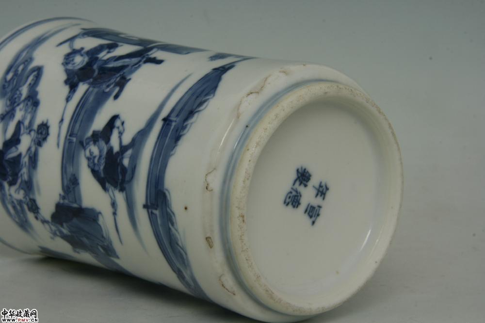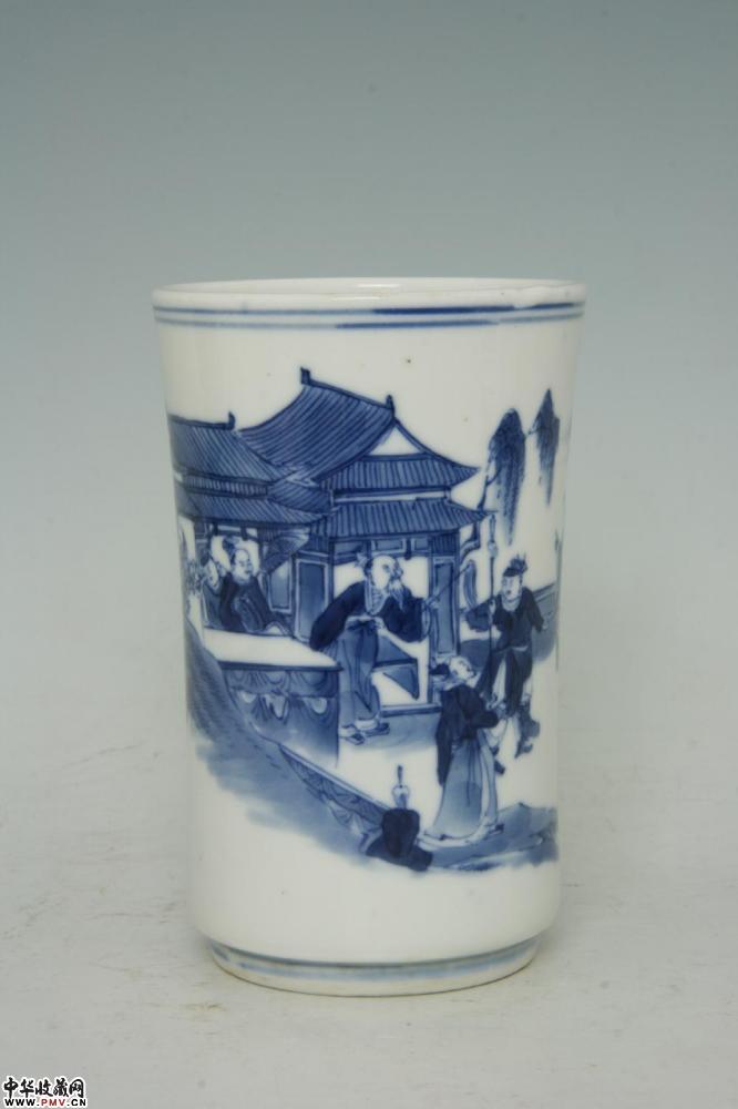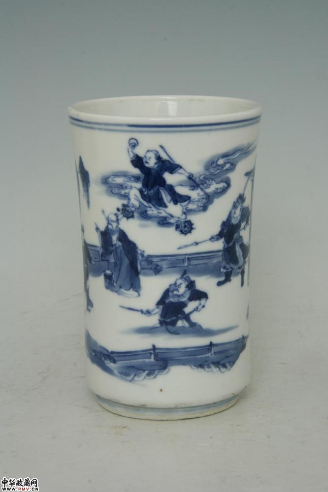 清光绪景德镇窑青花封神榜人物故事纹笔筒