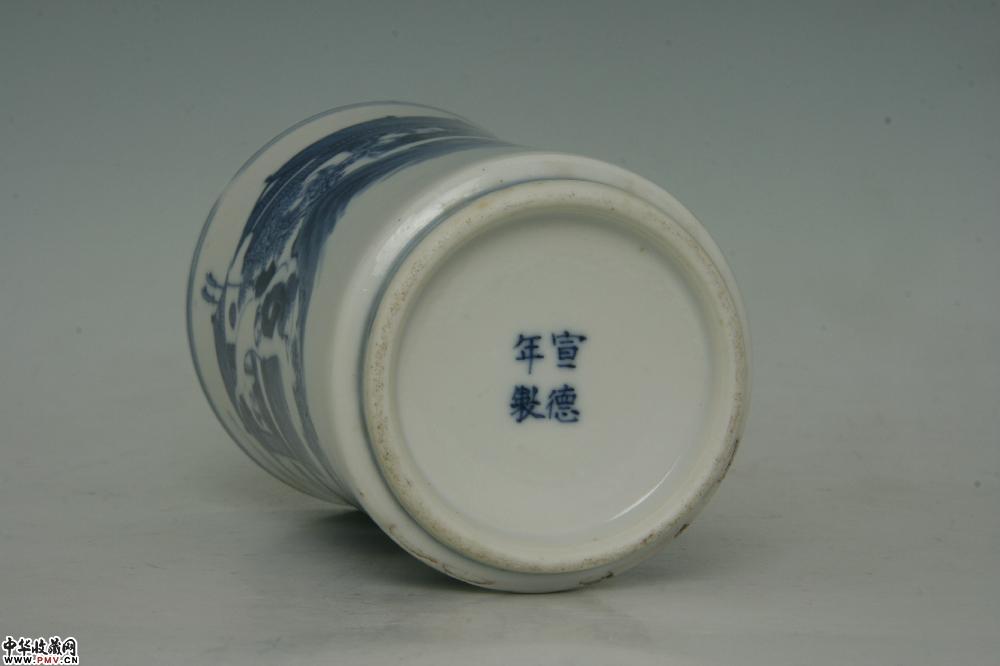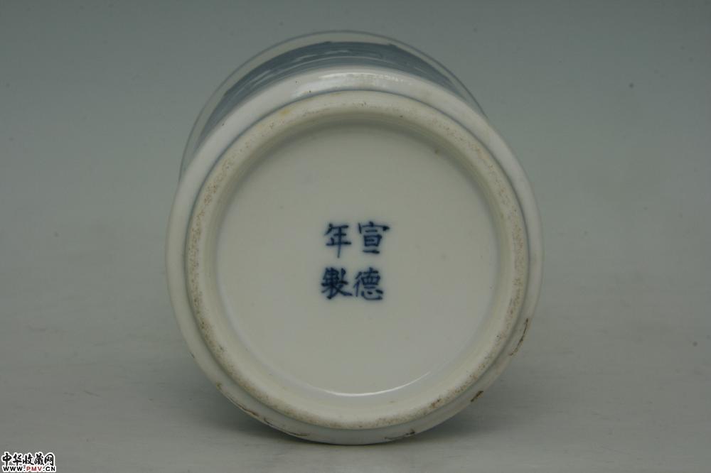 高12.5厘米,口径8厘米,底径6厘米,底部剥釉,“宣德年制”底款。