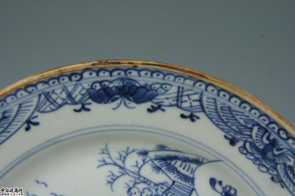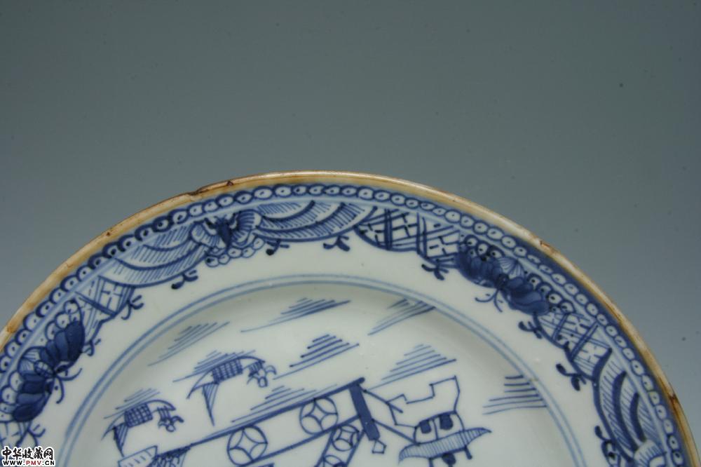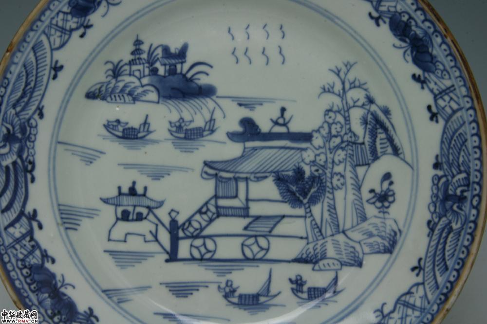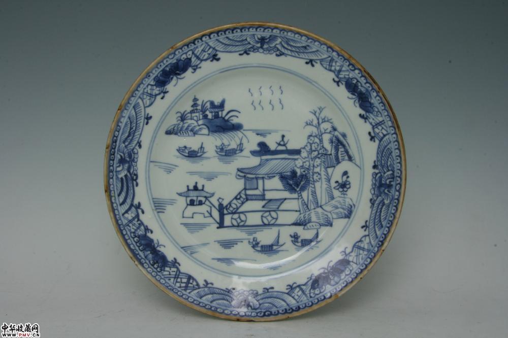 清乾隆景德镇窑青花山水楼阁纹盘