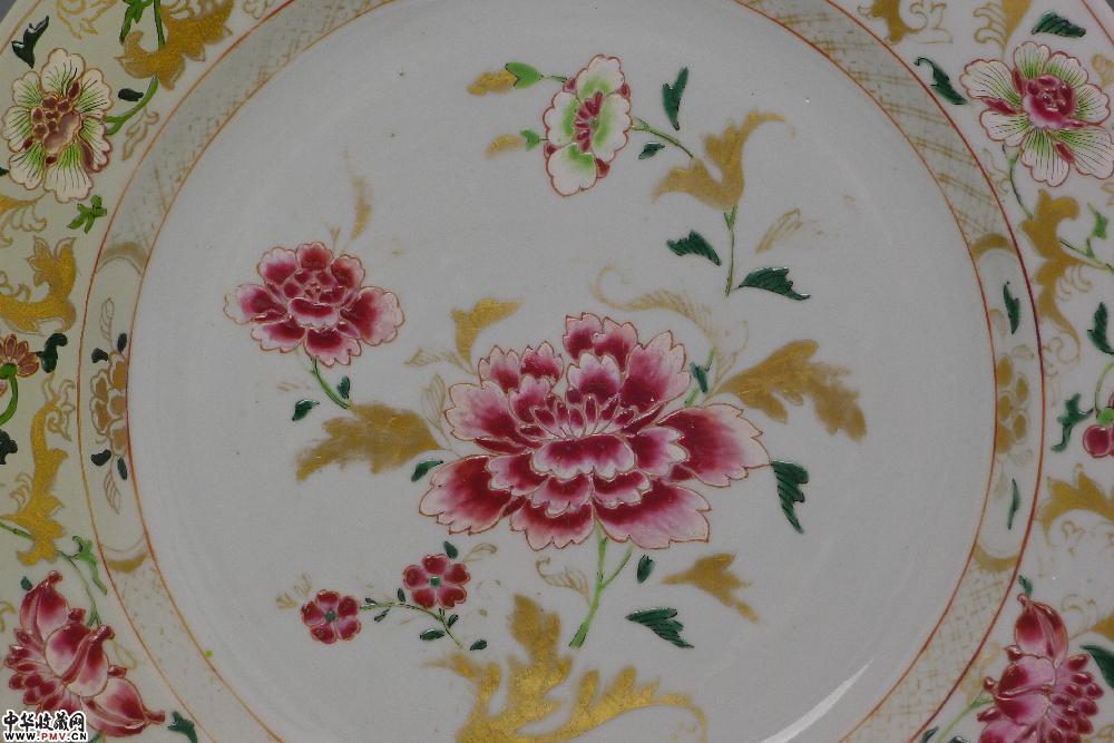 清乾隆景德景德镇窑粉彩描金牡丹纹大盘