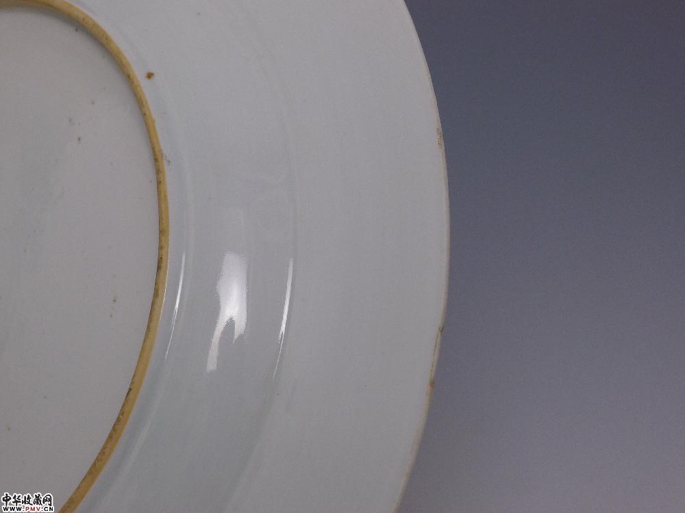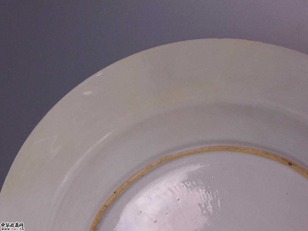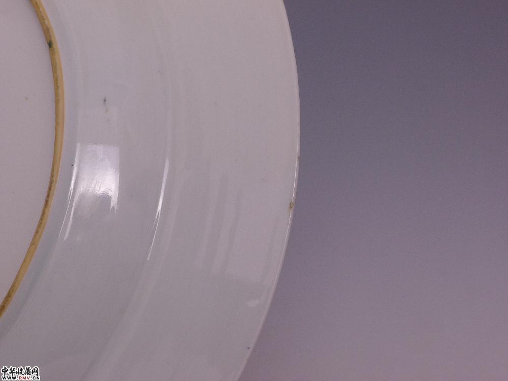 高4厘米,口径35.5厘米,底径20.5厘米,口沿有嘣修,小剥釉。
