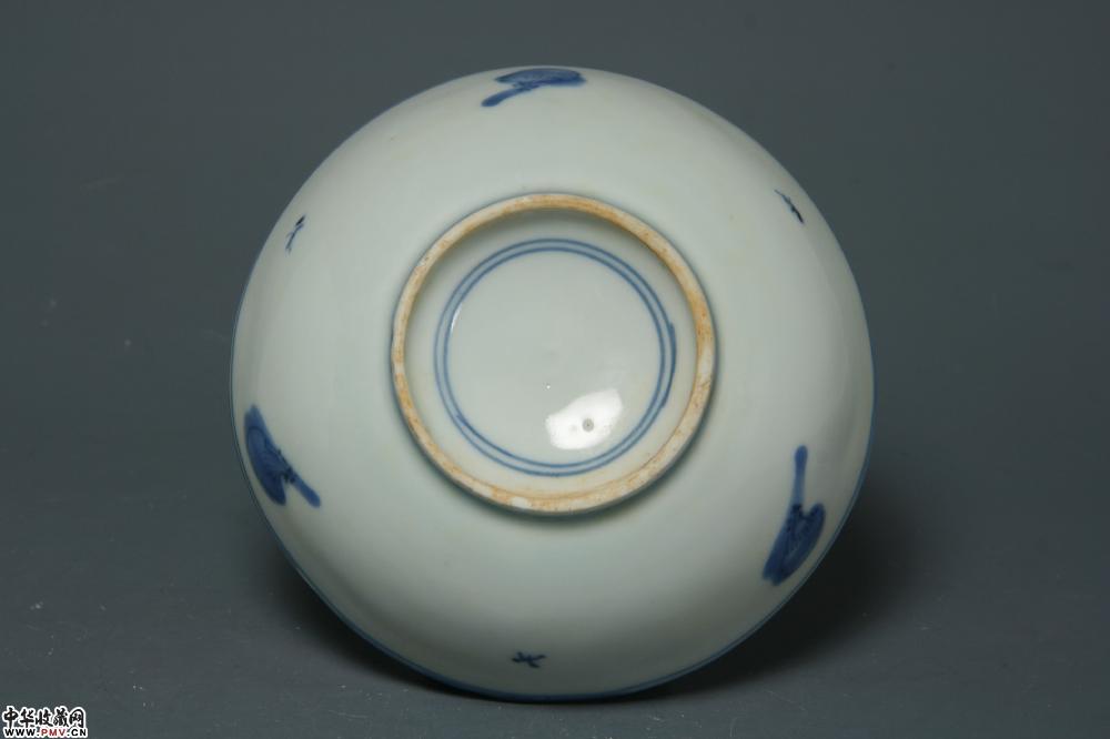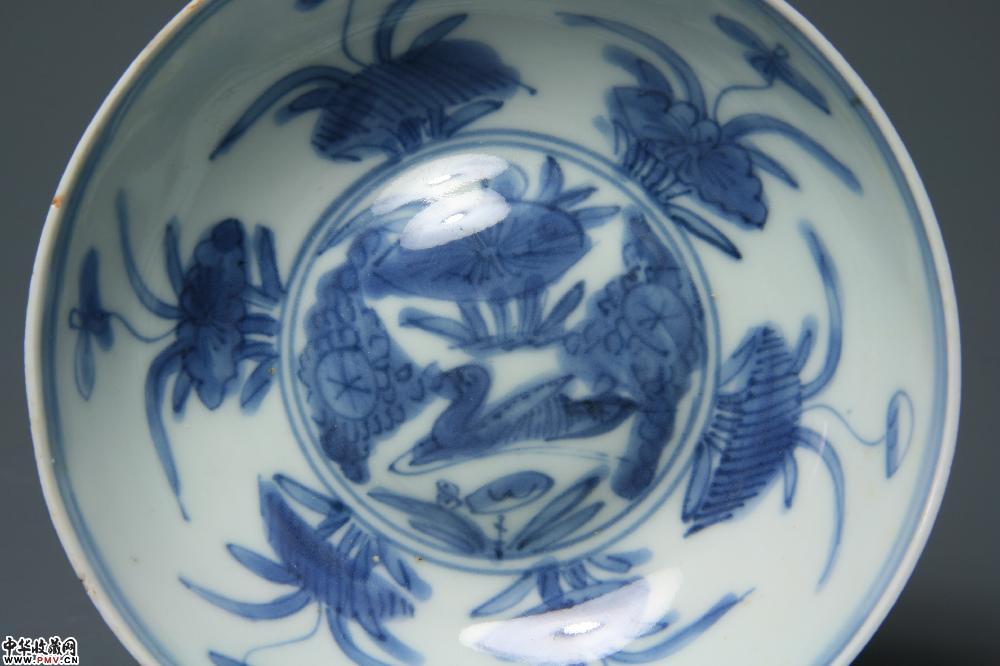 高3.8cm,口径11.8cm,底径5.5cm,口沿有两点气泡爆裂细小伤釉。此洗造型朴素工整,釉水非常腴润透澈,青花呈色也很沉着典雅,纹饰纹饰格调活泼写意,满塘的莲叶莲花皆随风舞动,一只宝鸭昂首在莲丛中游动,生趣盎然。这样一幅永不褪色的晚明写意作品,值不值得投资收藏,那就看您的鉴赏品味了。