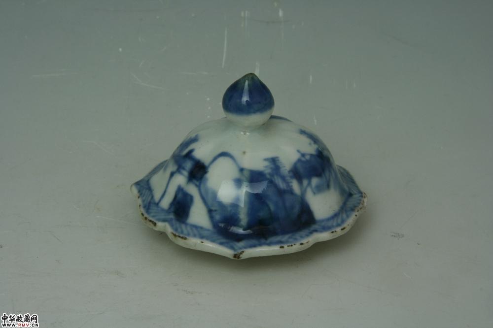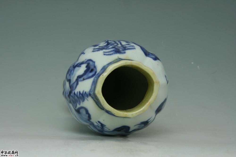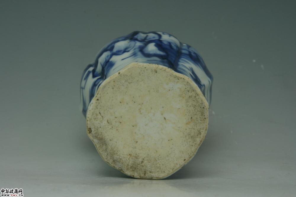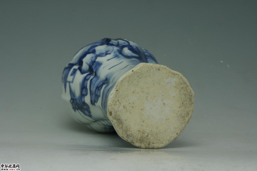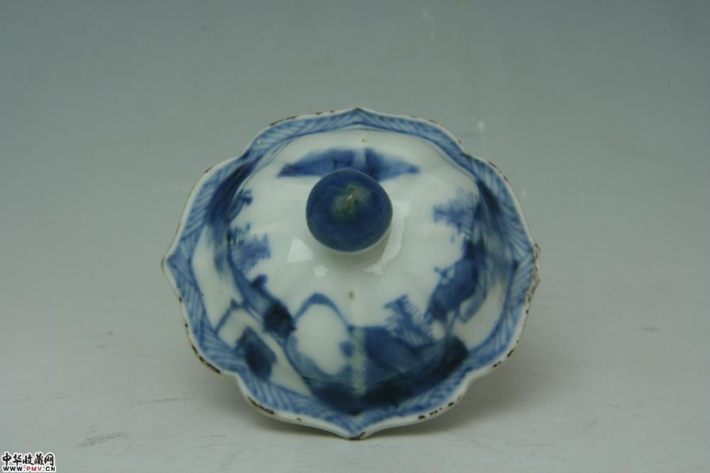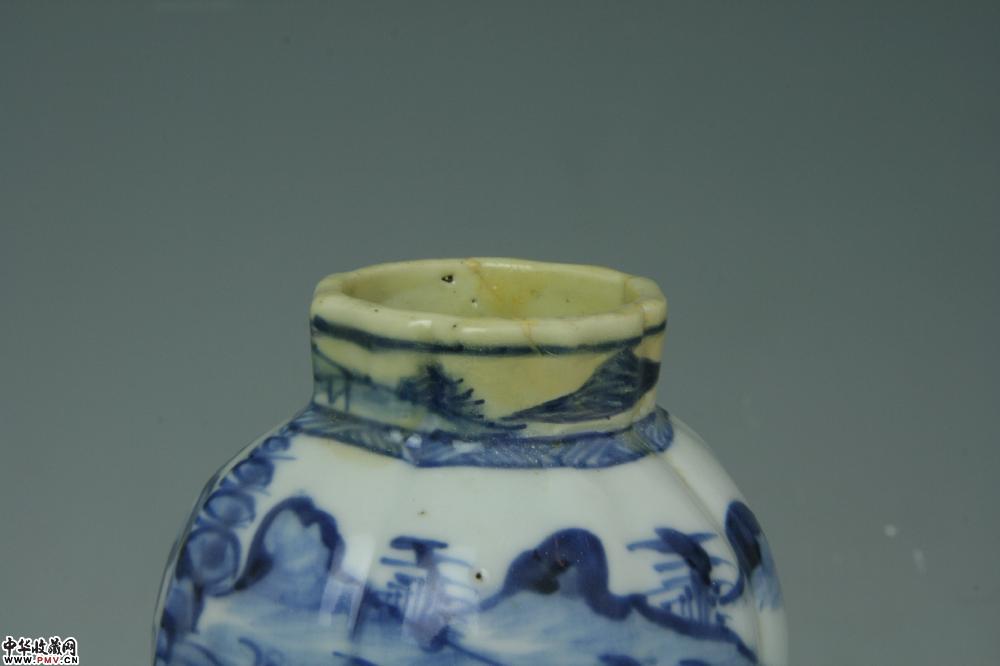 清乾隆景德镇窑青花山水纹瓜楞盖瓶