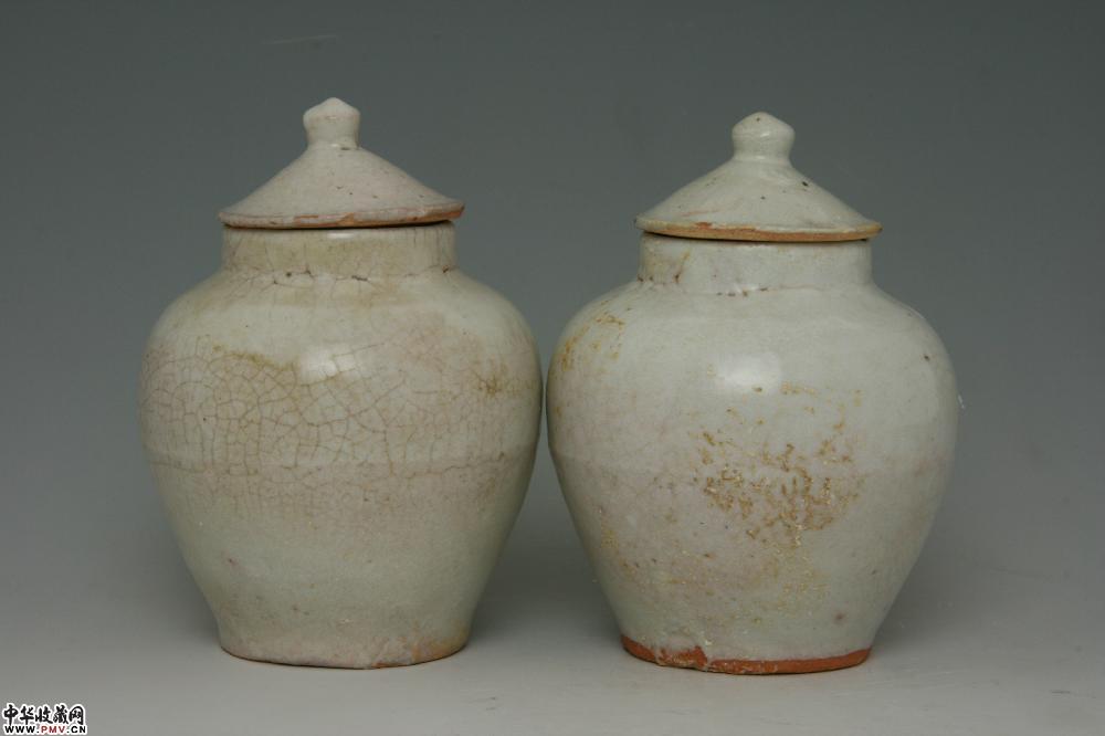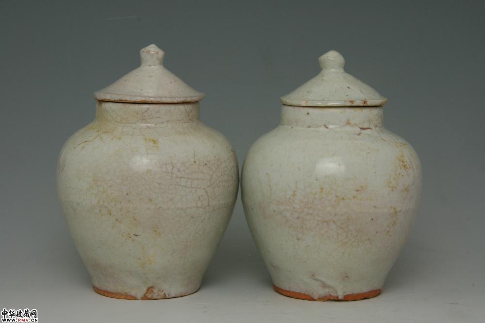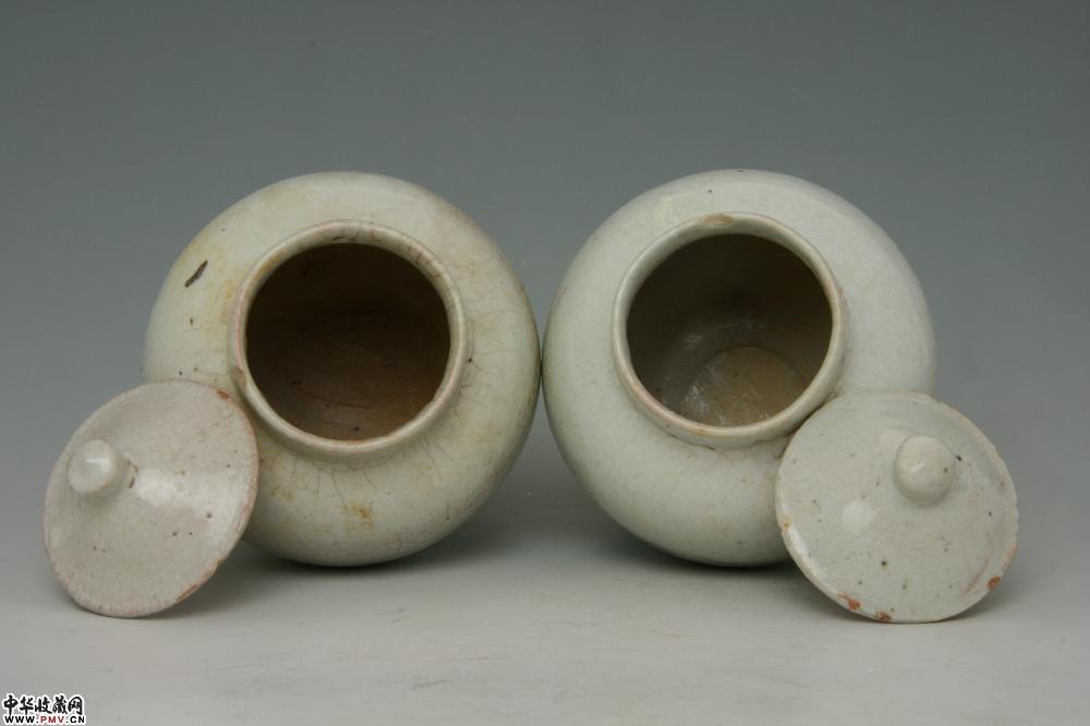 明天启景德镇窑白釉盖罐(一对)