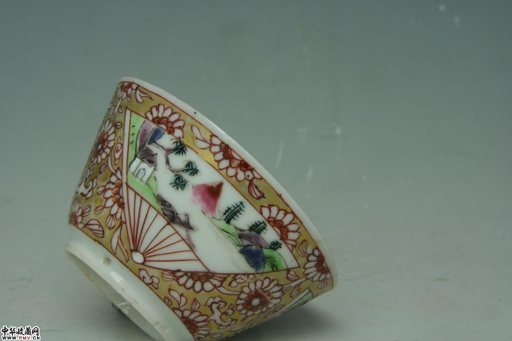 高3.9cm,口径7.1cm,底径3.4cm,一杯口沿小嗑皮。
