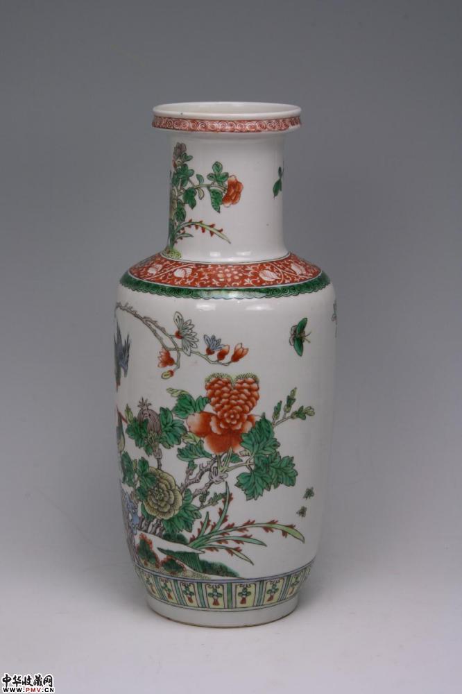 清光绪景德镇窑五彩雉鸡牡丹纹棒槌瓶
