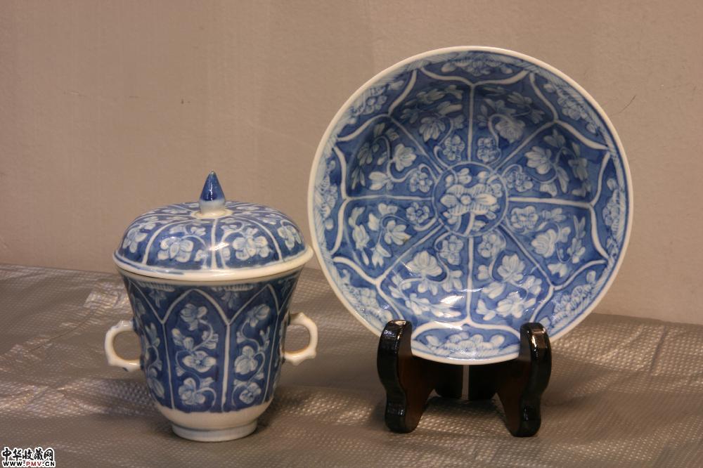 清乾隆景德镇窑青花留白花卉纹杯碟(一套)