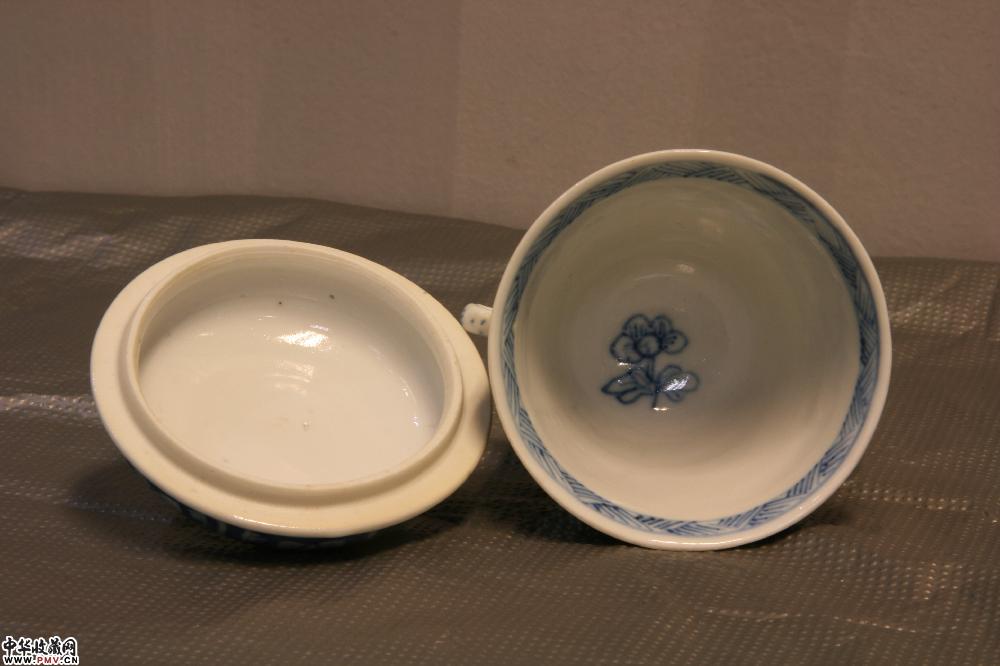 碟高3cm,口径13.2cm,杯通高11cm,口径8cm,完好。