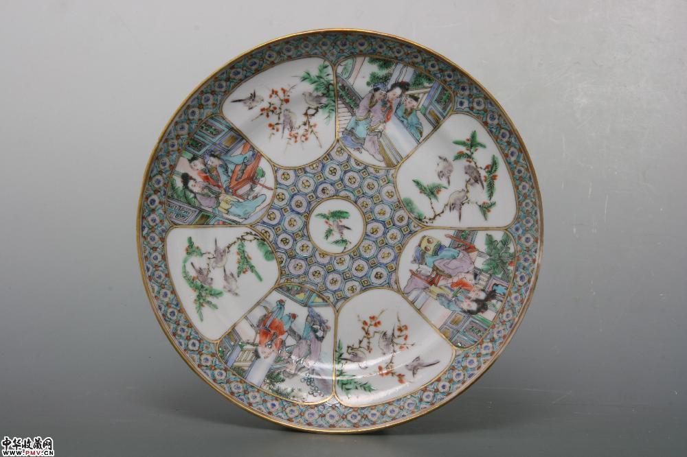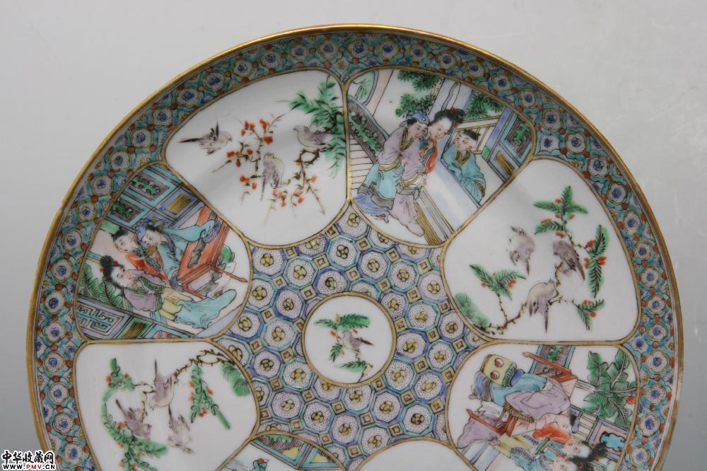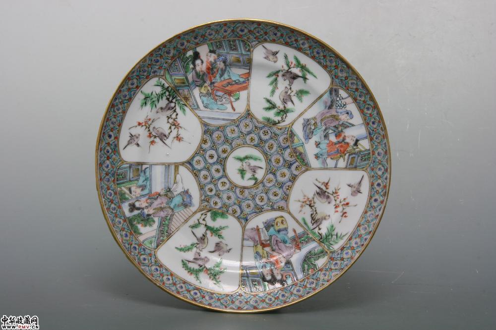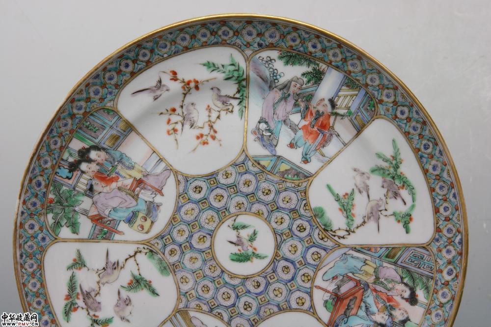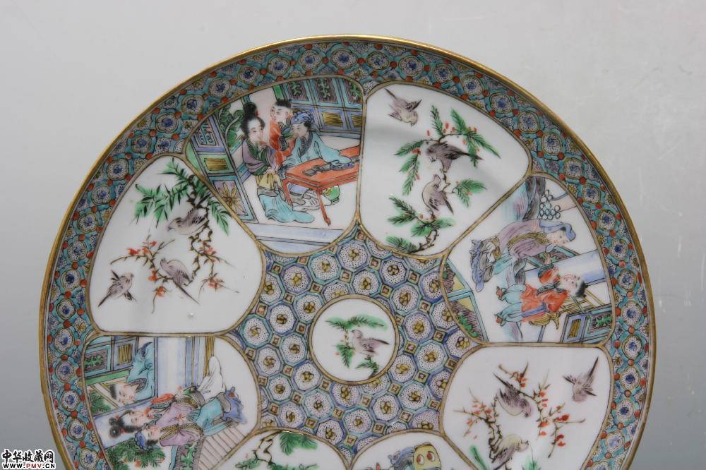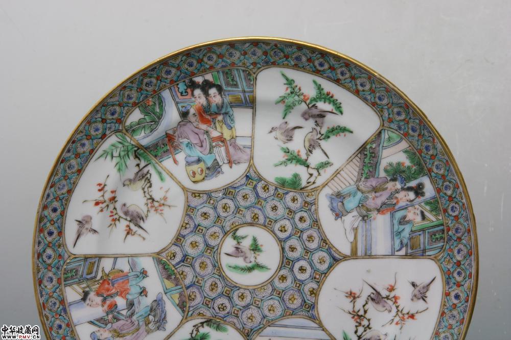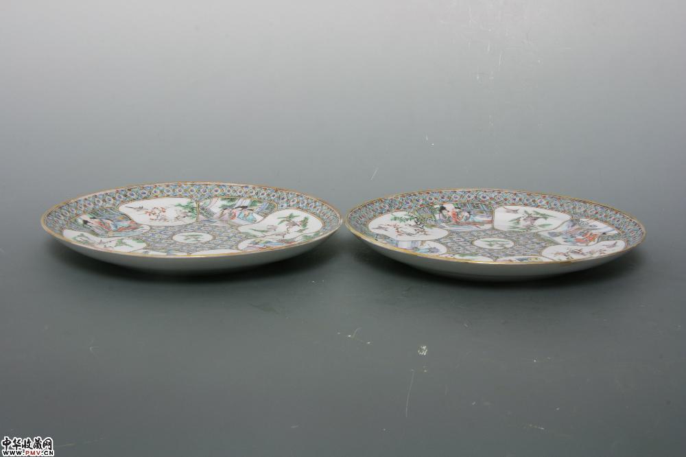 清晚期景德镇窑广彩开光人物花鸟纹盘(一对)