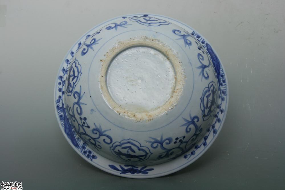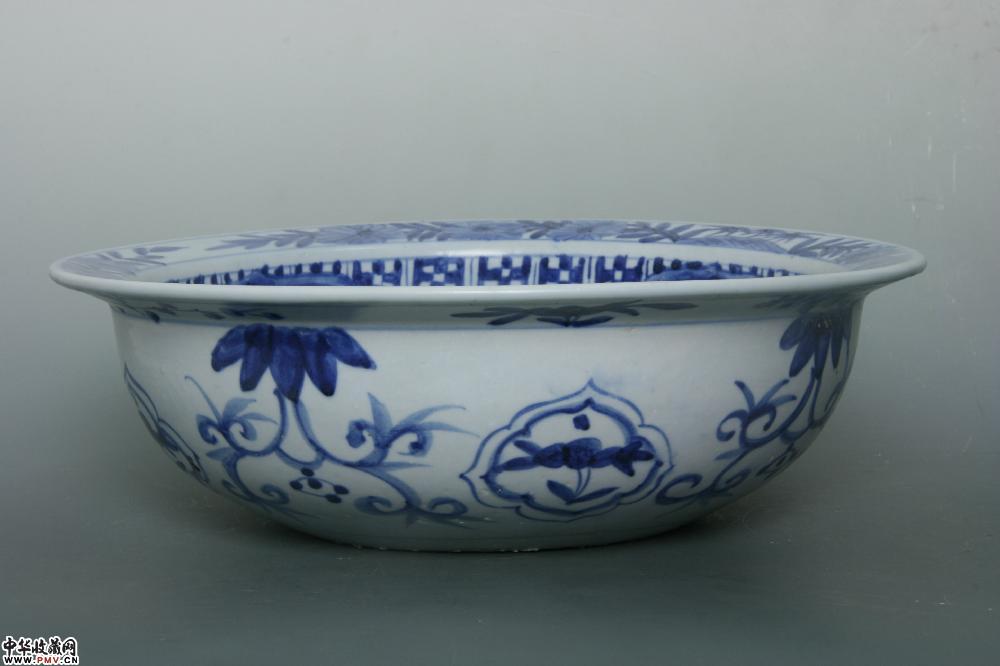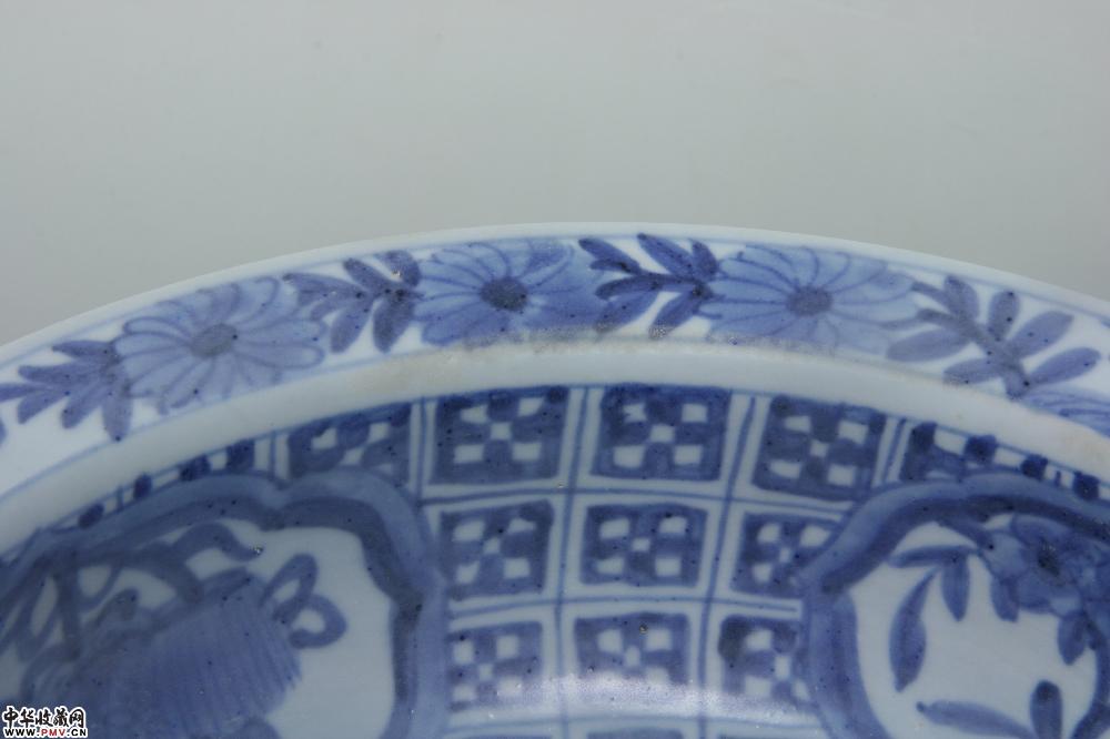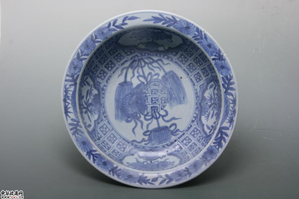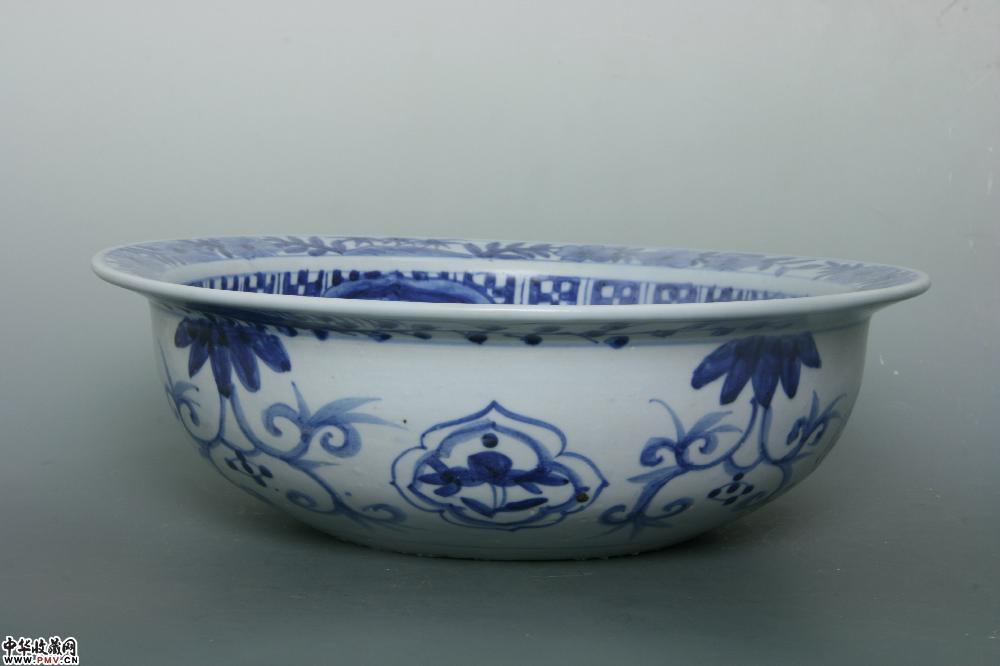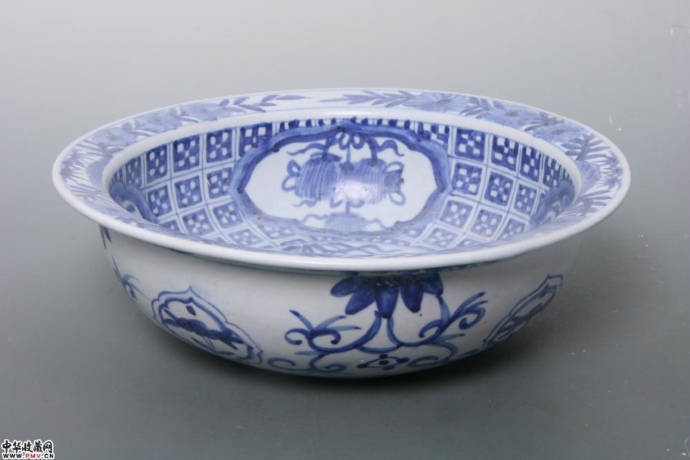 明晚期平和窑青花花卉纹折沿盆
