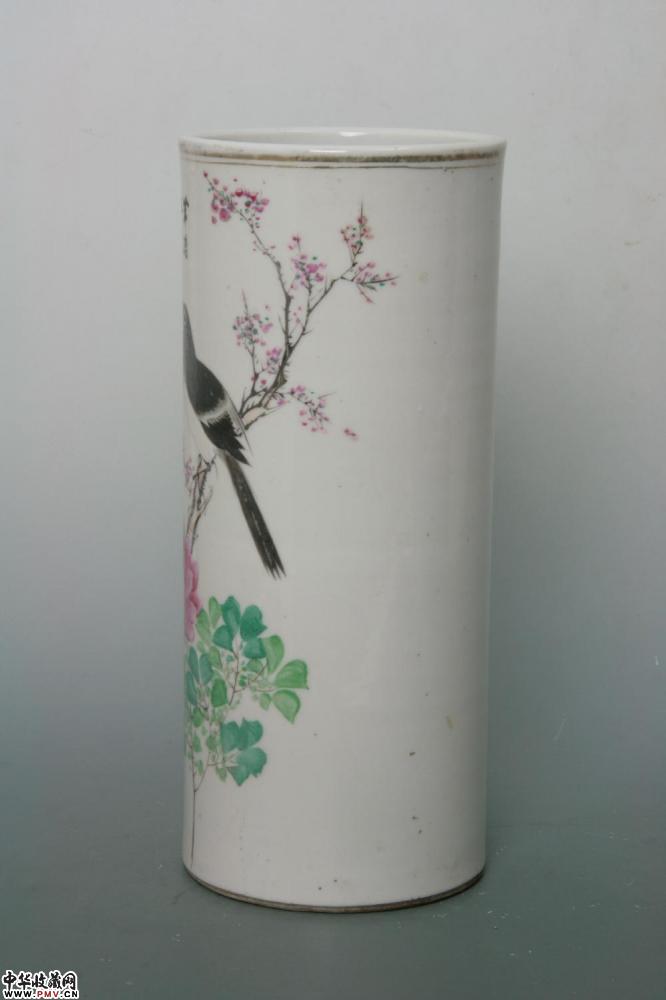 民国景德镇窑粉彩花鸟纹帽筒
